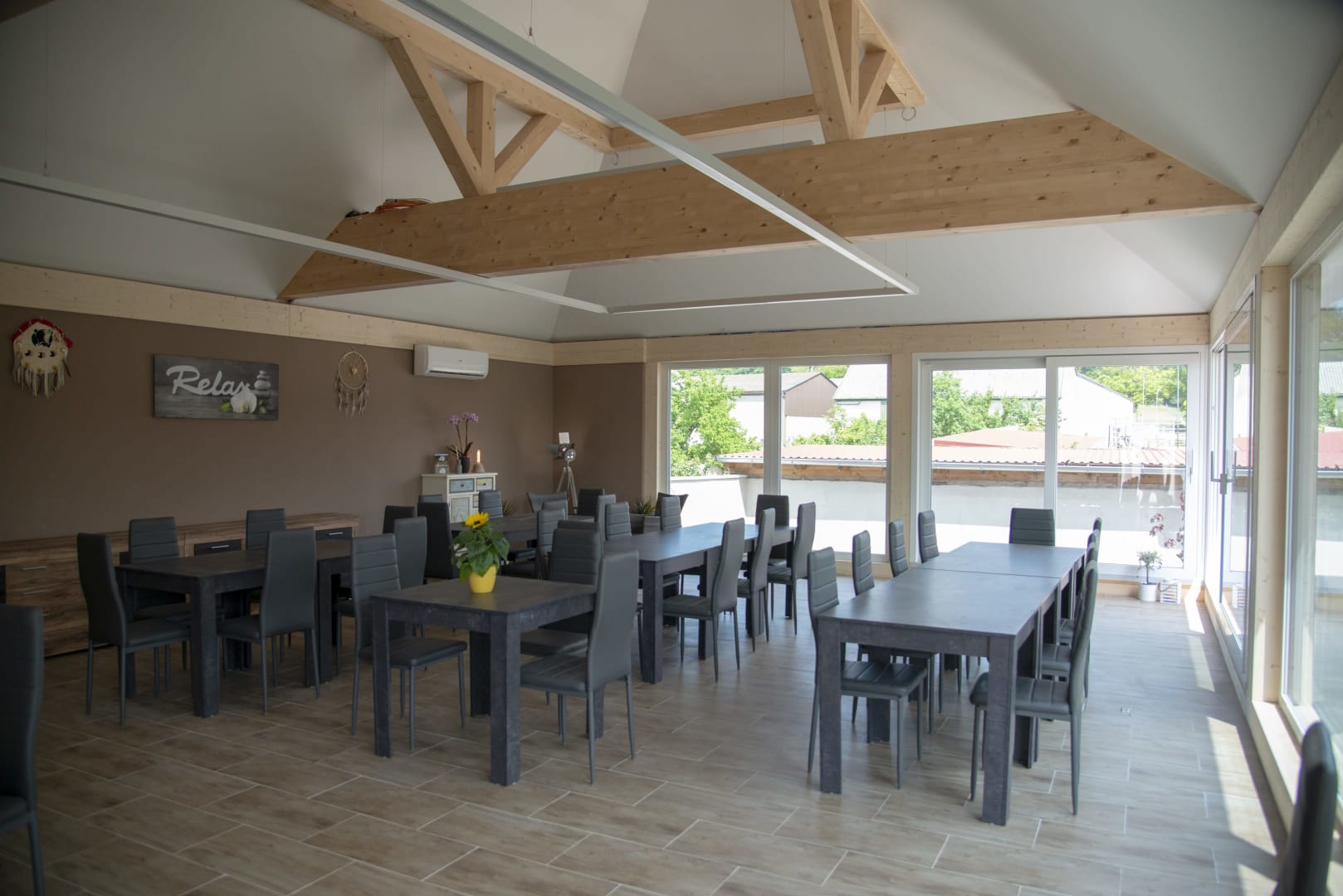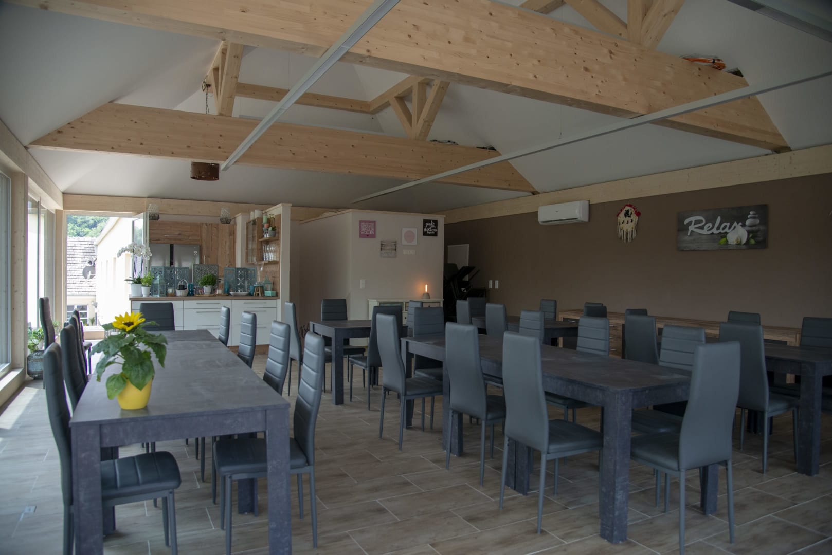 Die gesamte Etage besteht aus 4 Schlafzimmern mit 4 Bäder, 5 Toiletten, 100 m2 Mehrzweckraum mit Küche und kompletter Ausstattung für ca. 50 Personen. (Tische, Sessel, Geschirr), zusätzliche Benützung der Bar ikln. Stüberl mit Gardarobe und WC möglich, Verfügbarkeit und Preis auf Anfrage