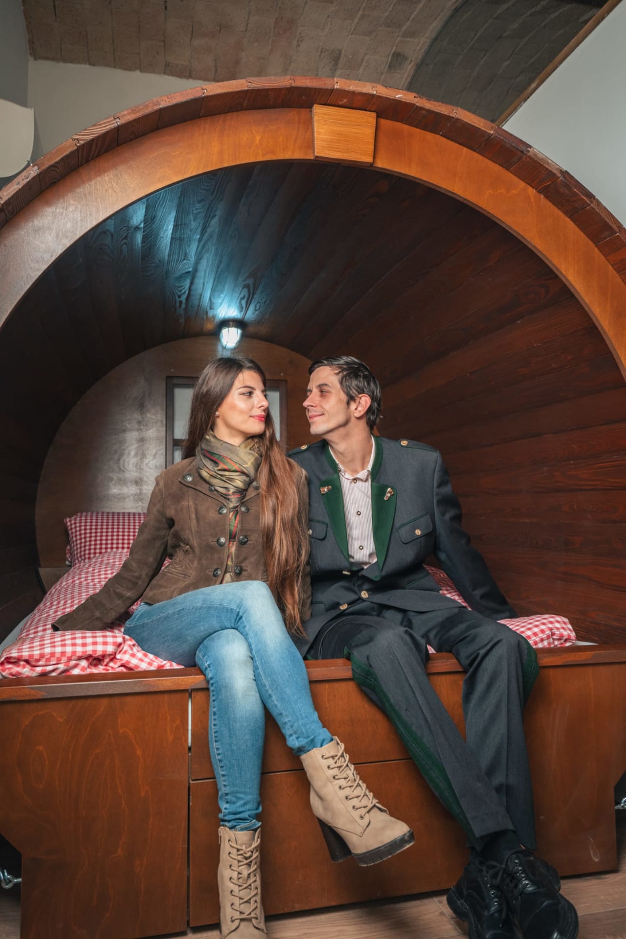 Wir bieten 12 weltweit einzigartigen Weinfass-Suiten mit jeglichem Komfort,