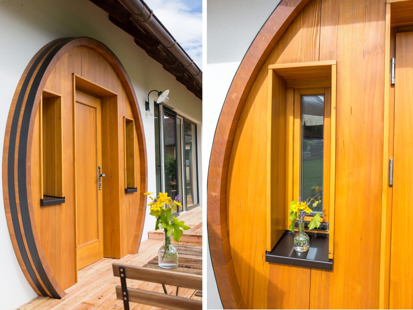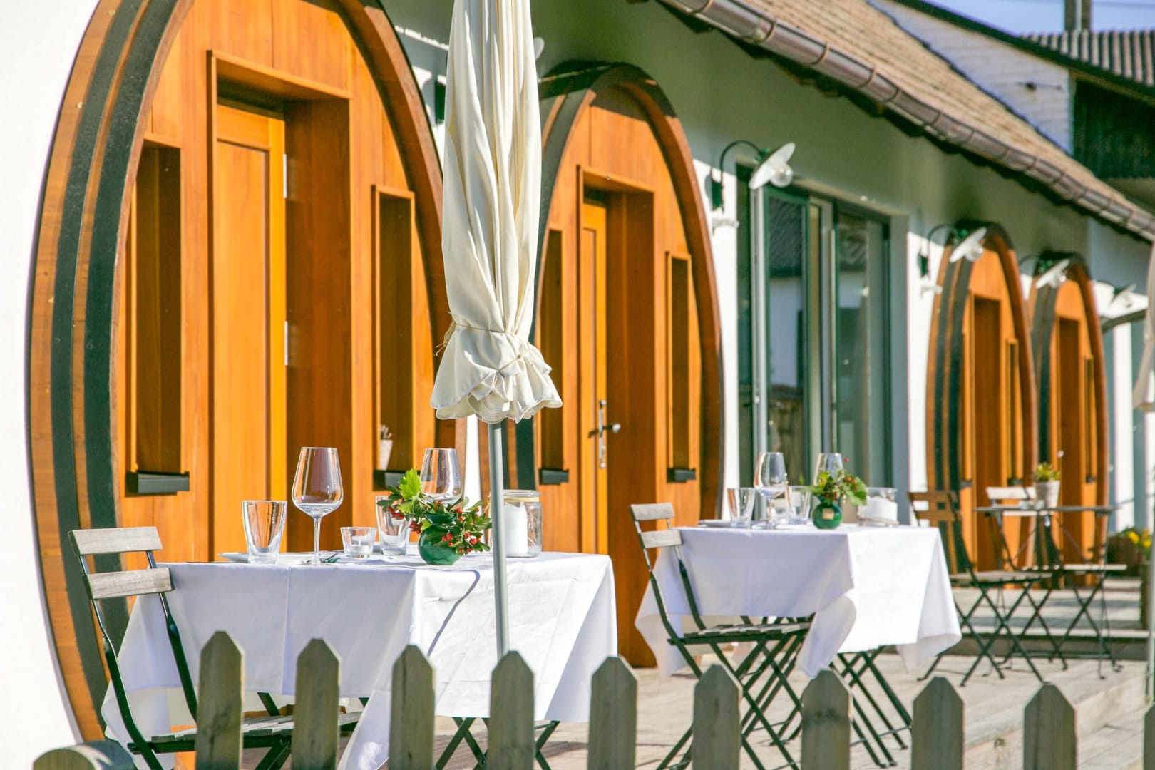 2 Weinfass-Chalets mit 2 Weinfass-Suiten und einem eigenen 70 m2 Kellergewölbe,