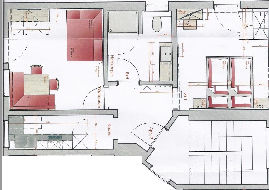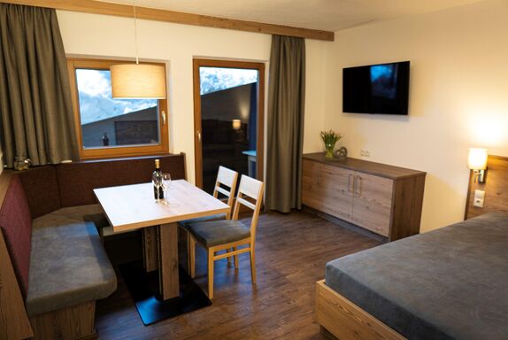 Das NEU renovierte Appartement Nr. 2 mit ca. 46 m² besteht aus: einem Doppelzimmer; einer modernen, vollausgestatteten Küche mit Kaffeemaschine, Kühlschrank, Cerankochfeld, Geschirrspüler uvm; ein Badezimmer mit Dusche/WC, Flur; Wohnzimmer mit Sitzecke und einem weiteren vollwertige Bett (Breite 1,40 m) für 2 weitere Personen; Balkon zum Genießen der Ötztaler Alpenluft.