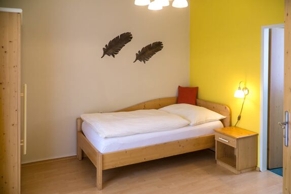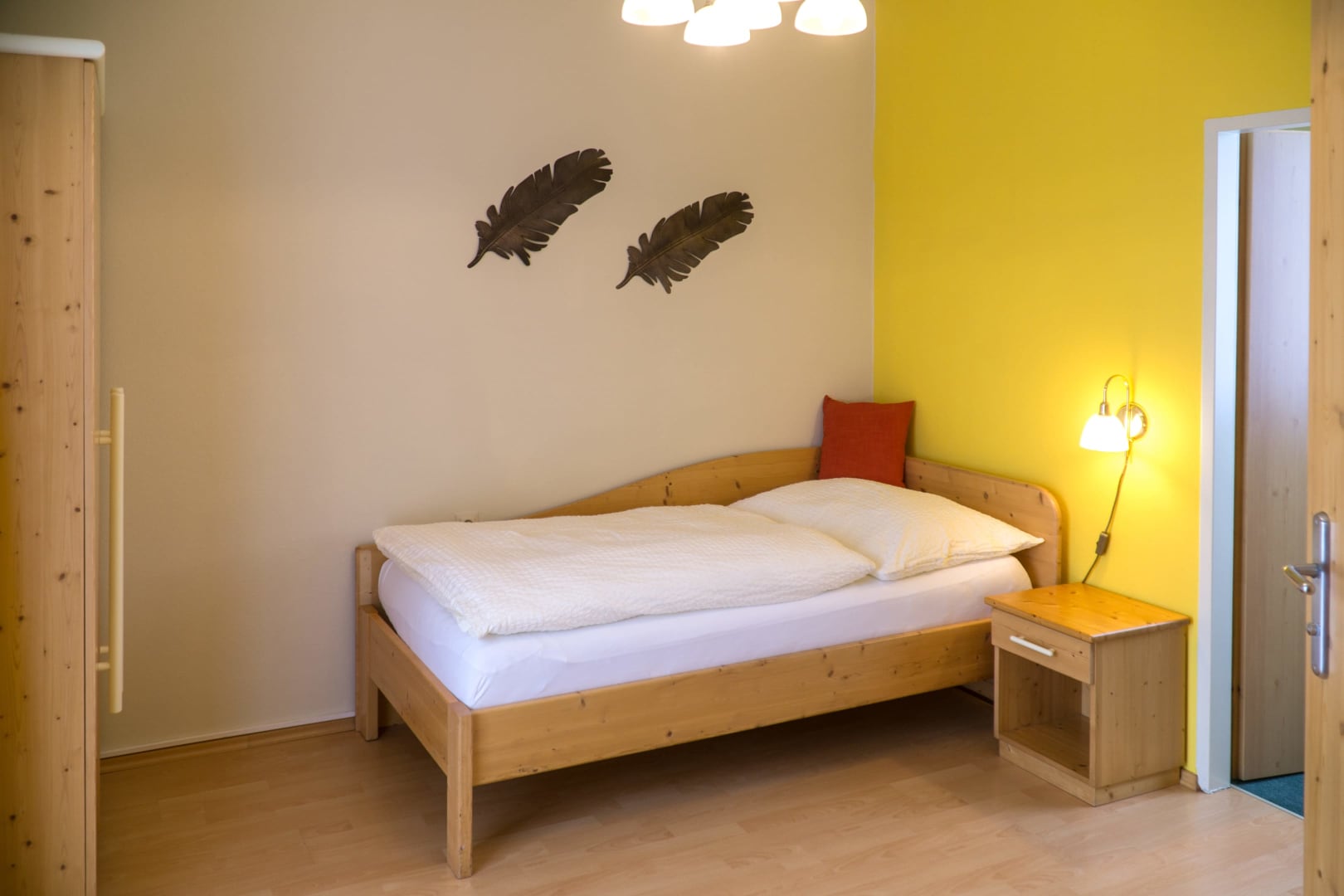 Das vorrangig in der Farbe Gelb gehaltene Einzelzimmer lädt zum Wohlfühlen ein.