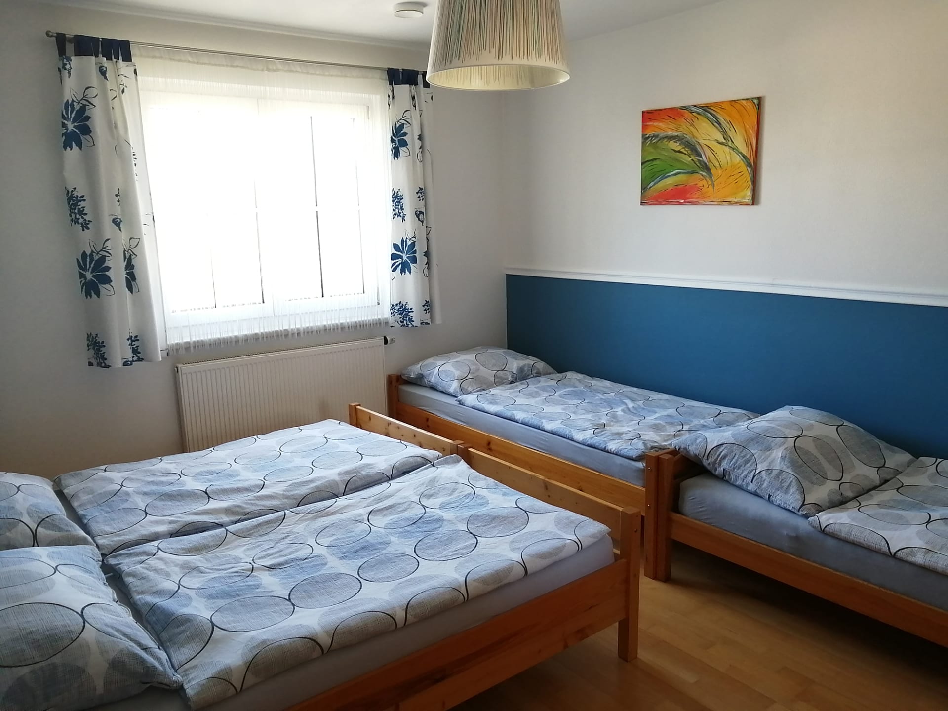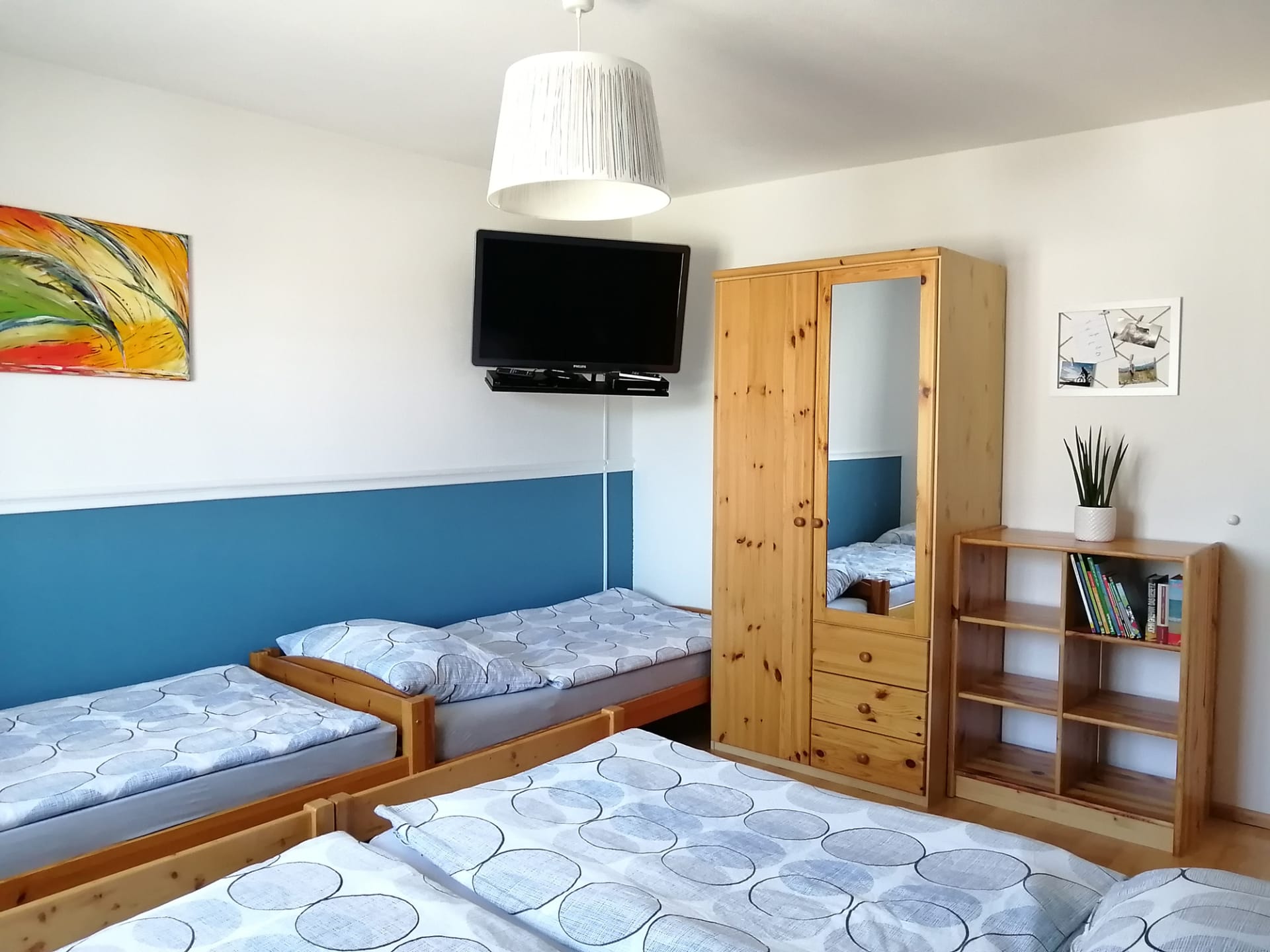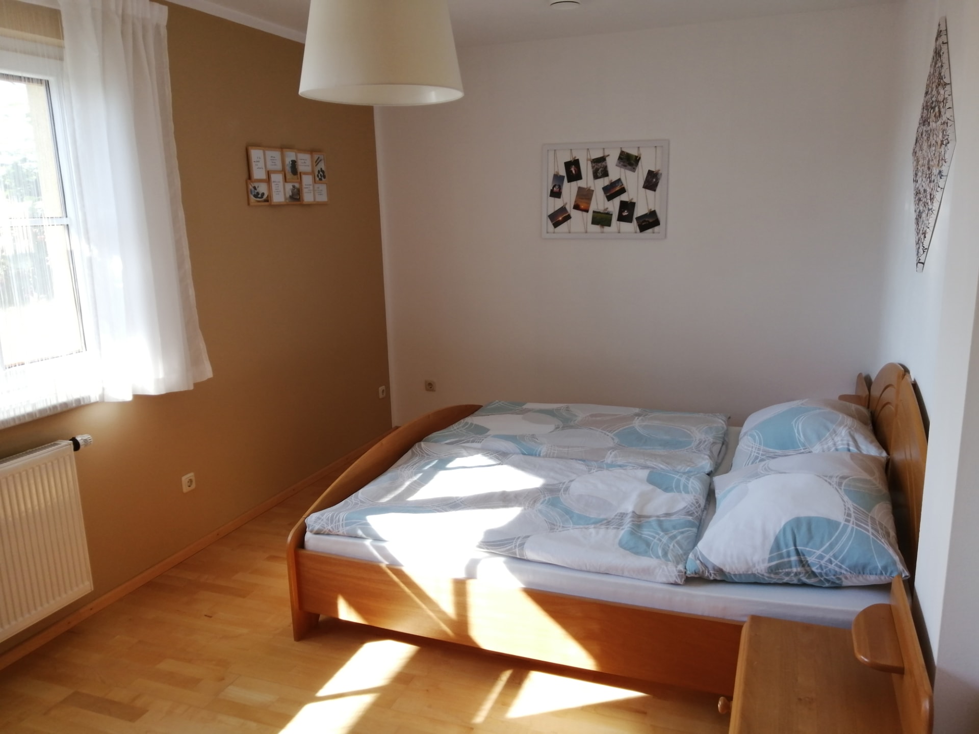 Die Ferienwohnung beinhaltet ein Doppelzimmer und ein Familienzimmer mit vier Betten.