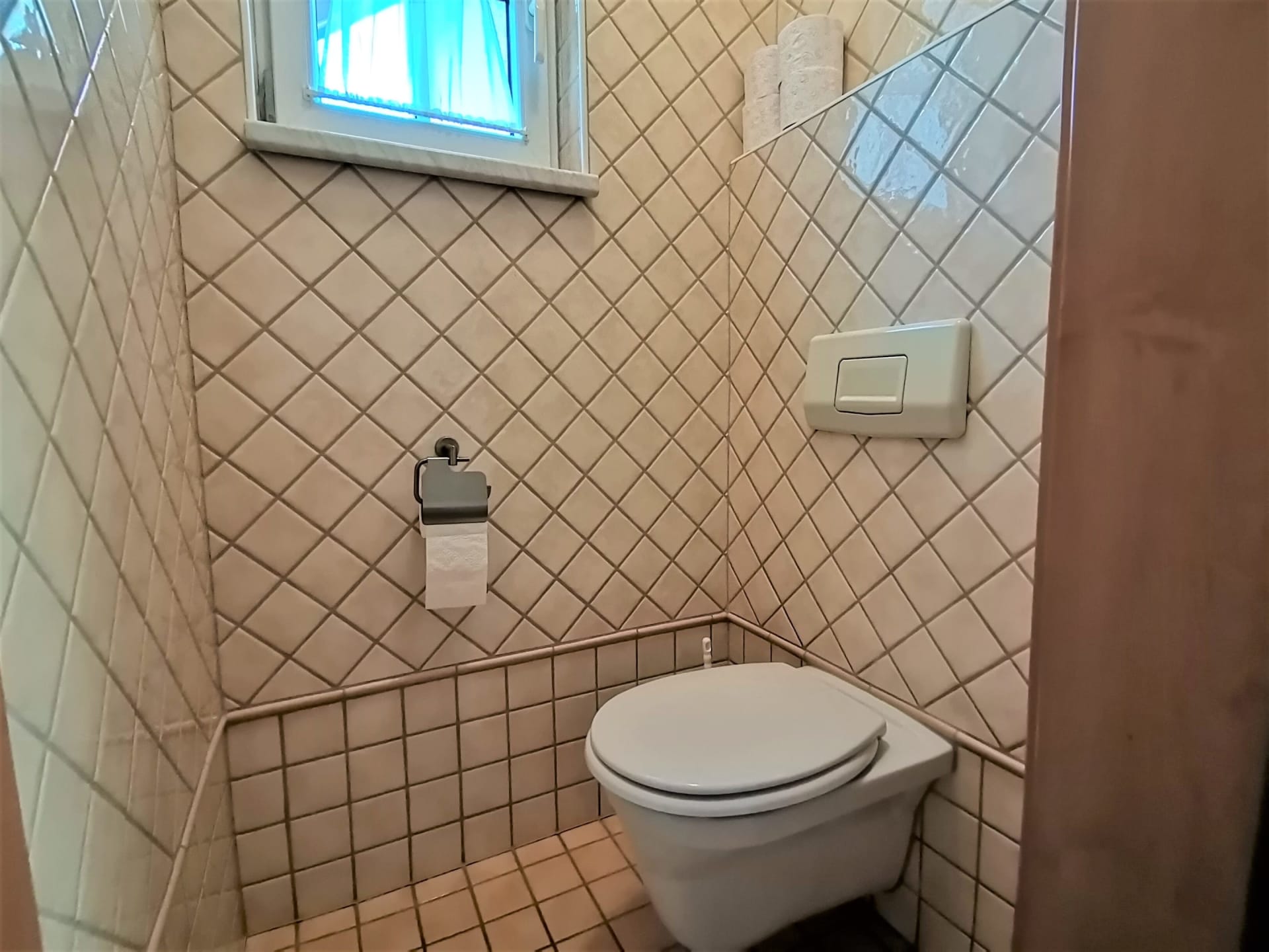 Komplett ausgestattete Küche (Induktionskochfeld, Backofen, Geschirrspüler, Kühlschrank, Mikrowelle, Kaffeemaschine, Wasserkocher, Toaster und Ausstattung für 6 Personen), Bad mit Dusche und Badewanne (Fön), Vorraum, Eingangsbereich mit Stiegenaufgang und dem separaten WC.