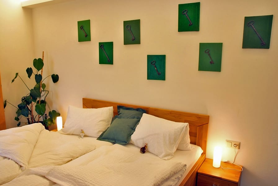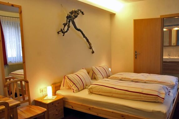 helles, freundliches Zimmer mit einem Weinstock über dem Bett - daher der Name Weinstockzimmer