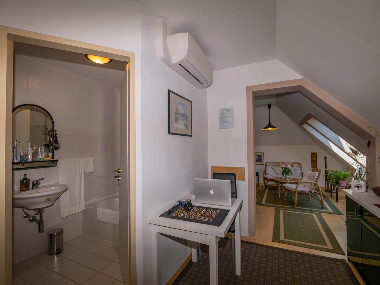 Zimmer ca. 36 m², Bad, WC (getrennt), Telefon, Kabel-TV, WLAN, Föhn, Frühstücksbuffet