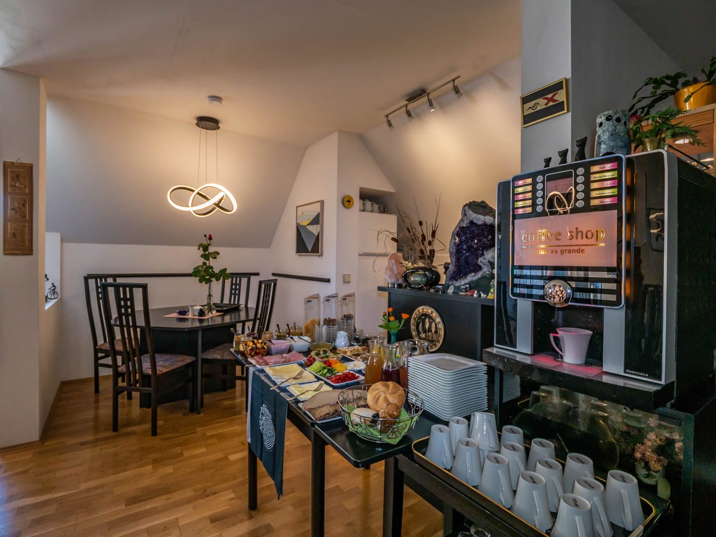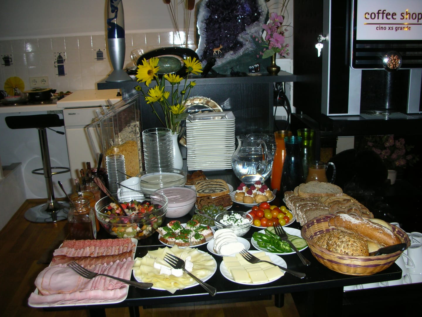 Ihren Urlaubstag beginnen Sie in einem gemütlichen Frühstücksraum bei einem reichhaltigen Buffet, auch mit Bioprodukten, Vollkornbrot und Marmeladen aus eigenen Früchten.