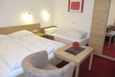 Ausstattung Zimmer: Doppelbett, kleine Sitzcouch (Schlafcouch für 3. Person), Tisch und Sofastuhl - Flachbildschirm mit SAT-TV inkl. Radio, Radiowecker, Zimmersafe, Minikühlschrank, Wasserkocher, W-LAN (limitiertes Datenvolumen inklusive) und Balkon.