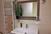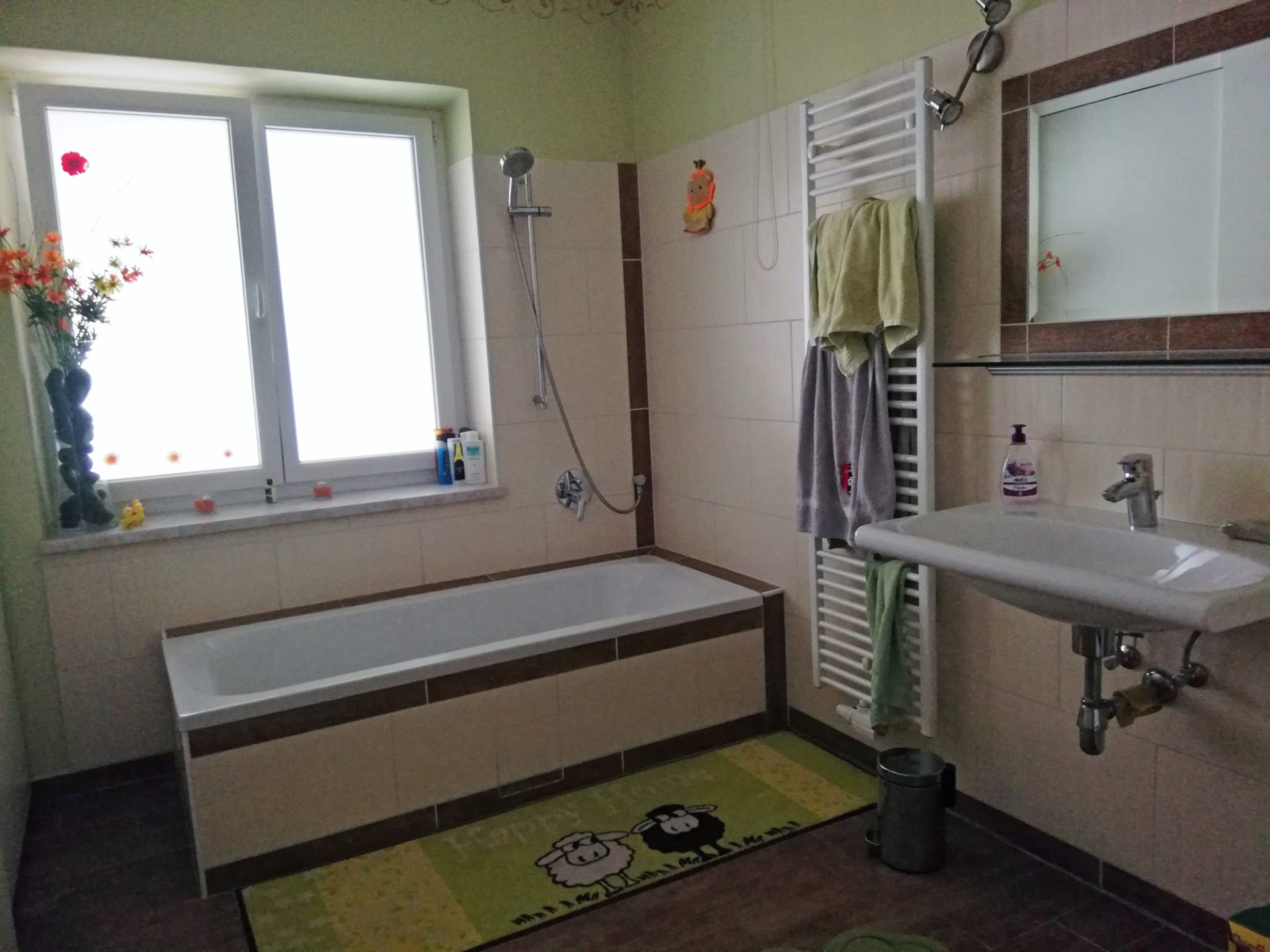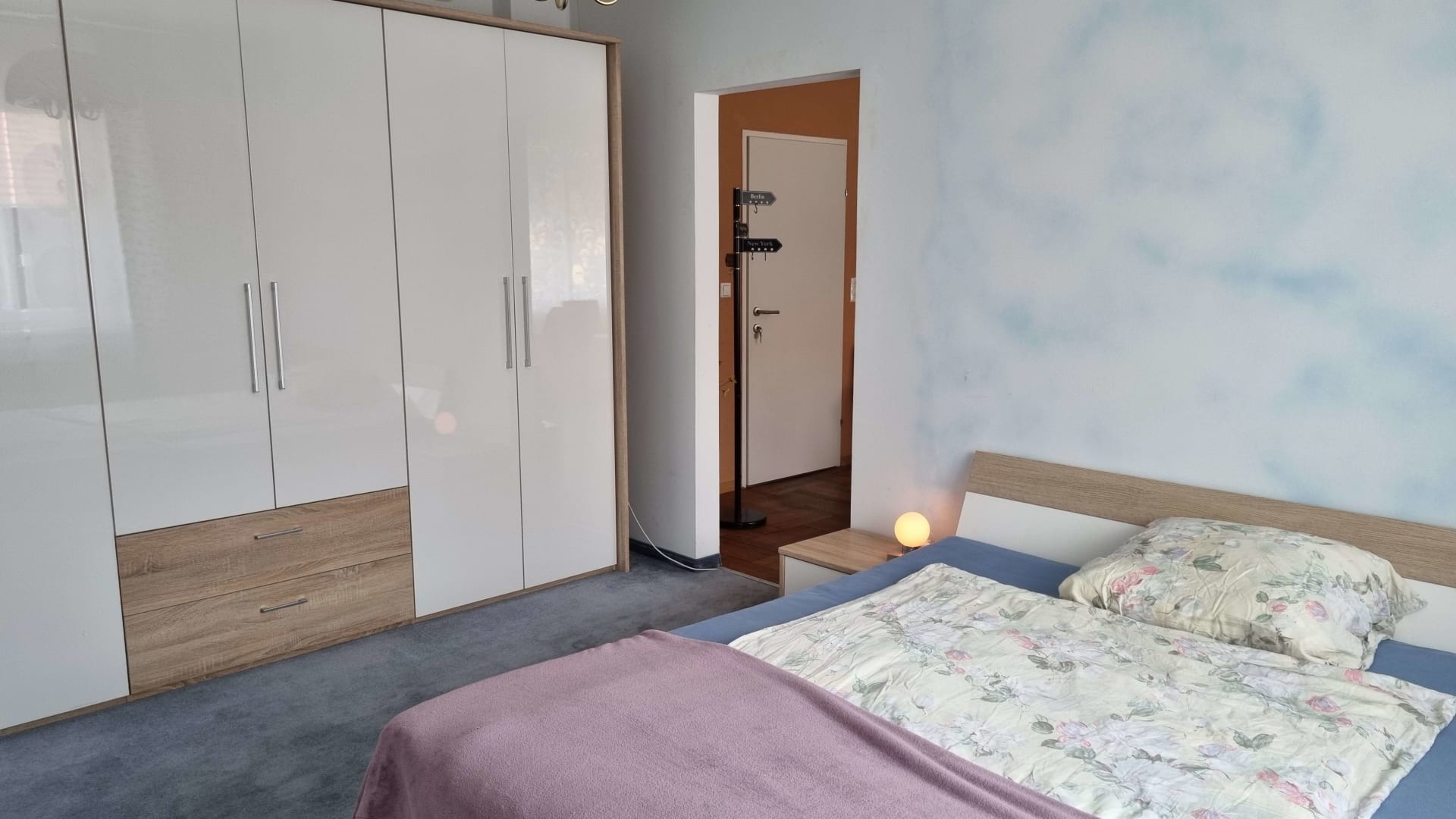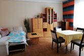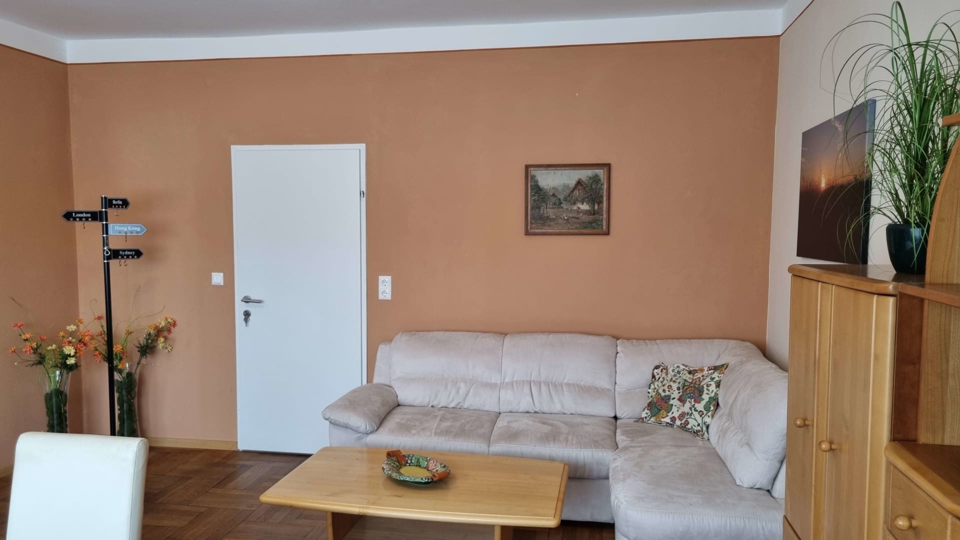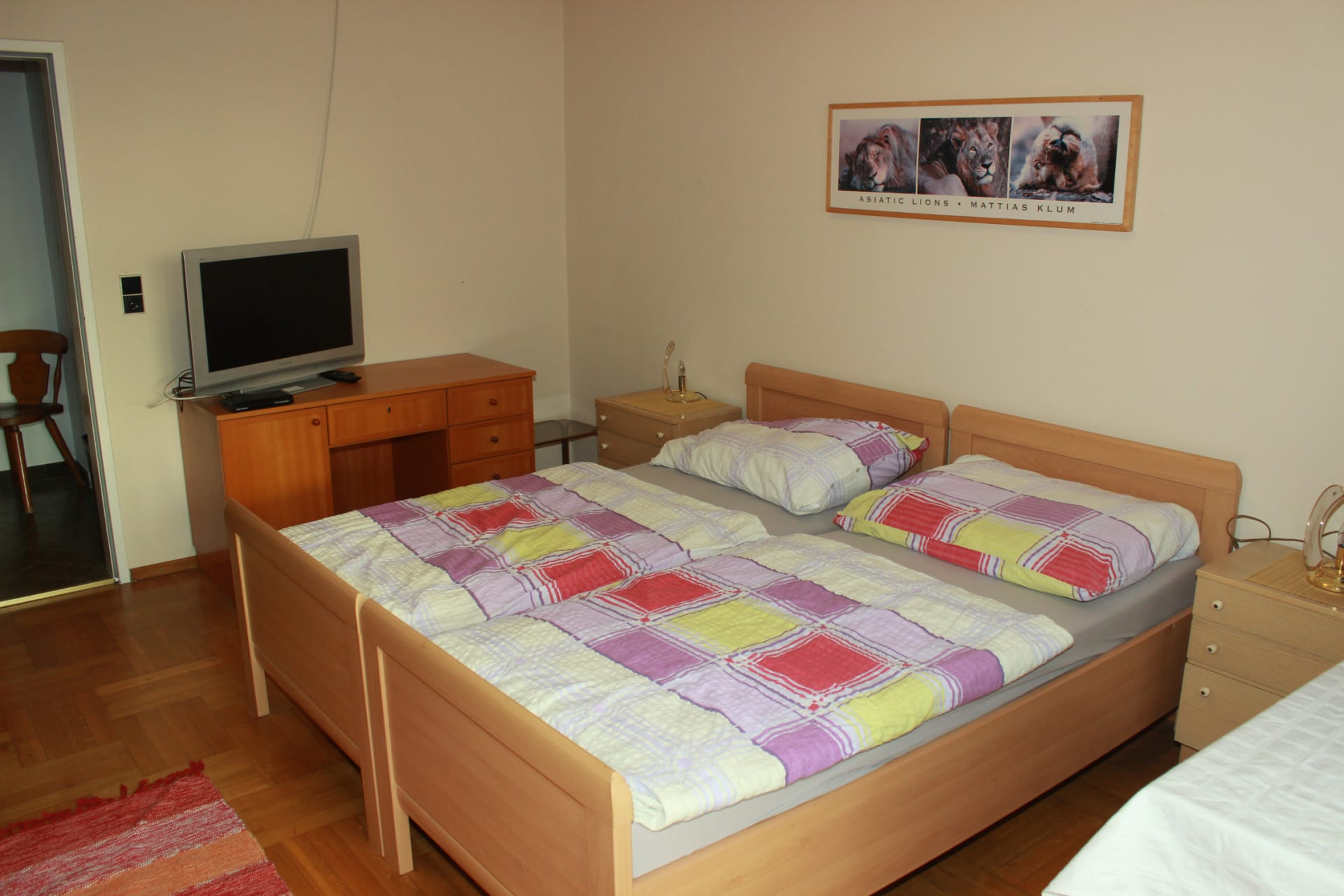 Unsere Suite 1 VORAUS besteht aus einem Schlafzimmer mit Doppelbett, Spannteppichboden und großem Schrank - einem damit verbundenen Wohnzimmer mit SAT-TV, ausziehbarer Couch und Esstisch - einem Vorraum und einem Badezimmer mit Waschtisch, Badewanne mit Duschvorhang, WC, Waschmaschine, Wäschetrockner und Wäschetrockenständer. Die straßenseitigen Zimmer verfügen über Fenster mit Aussenrollläden. Auf Anfrage kann für eine weitere Person ein Zusatzbett zur Verfügung gestellt werden.