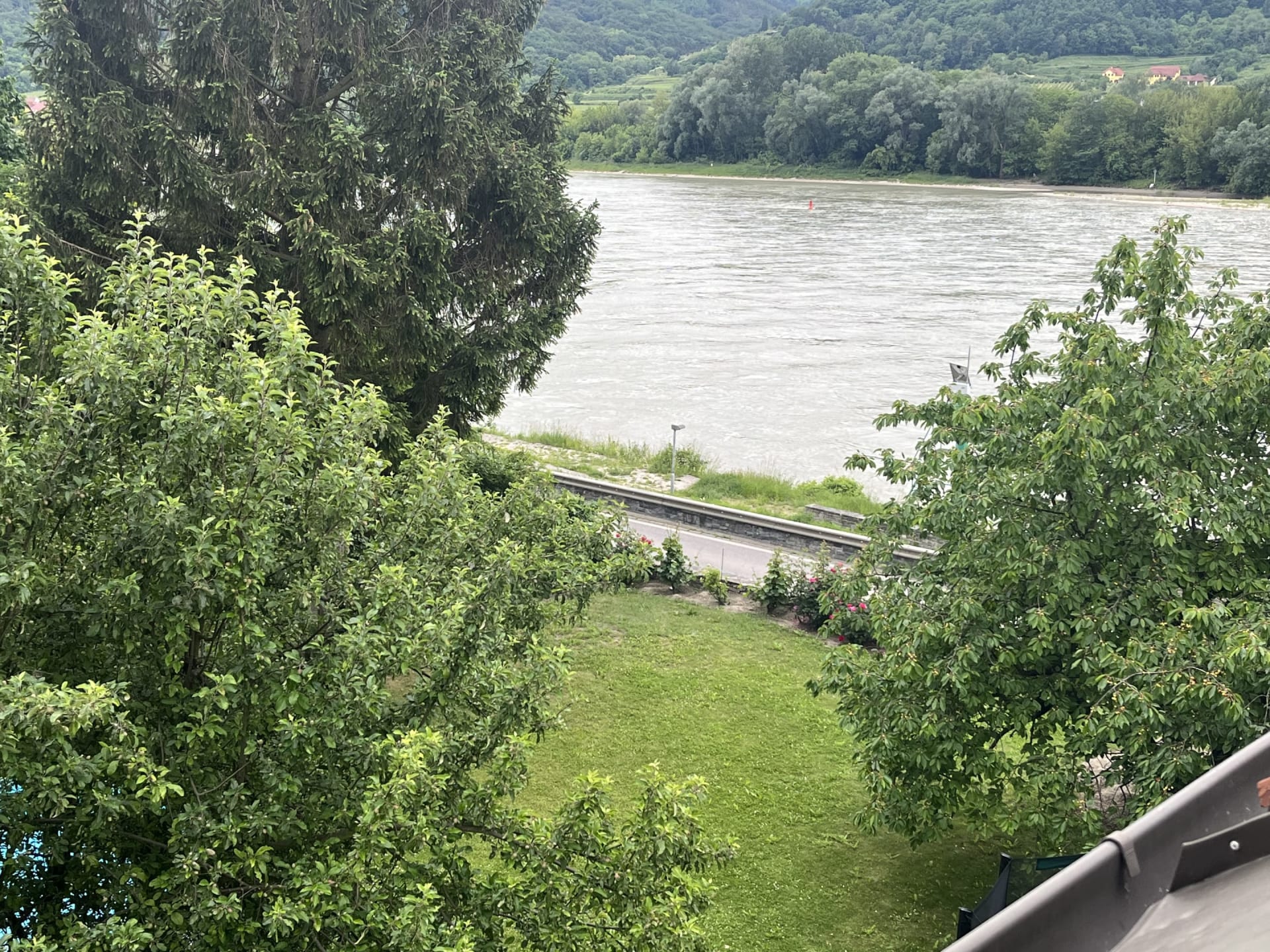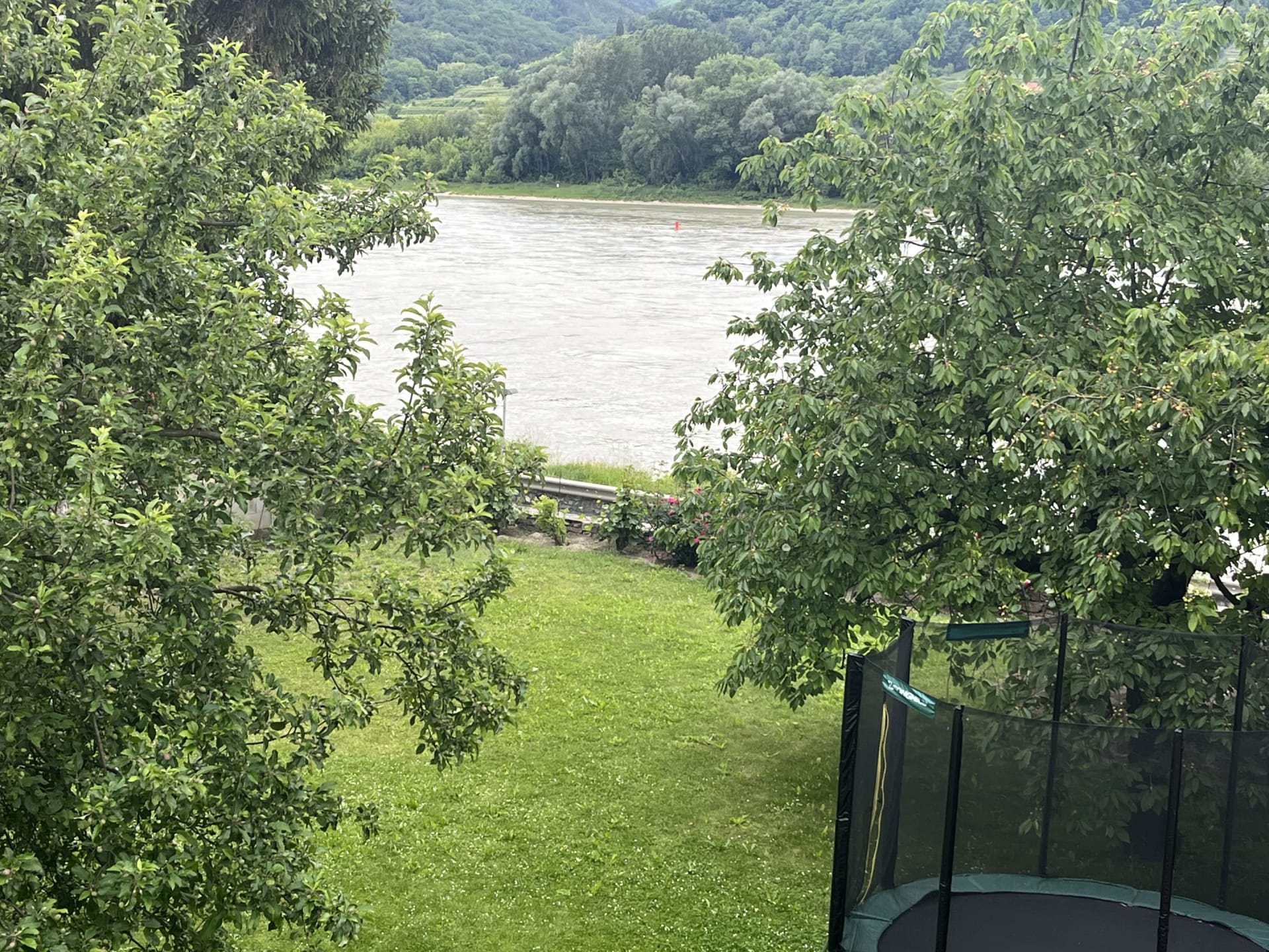 ca. 27m² ausgestattet mit Vollholzmöbel mit Blick in den Garten und seitlich zur Donau, einer Couch zum Verweilen , DU, WC, TV, Safe, Klimaanlage, Fön, Wlan und Telefon.