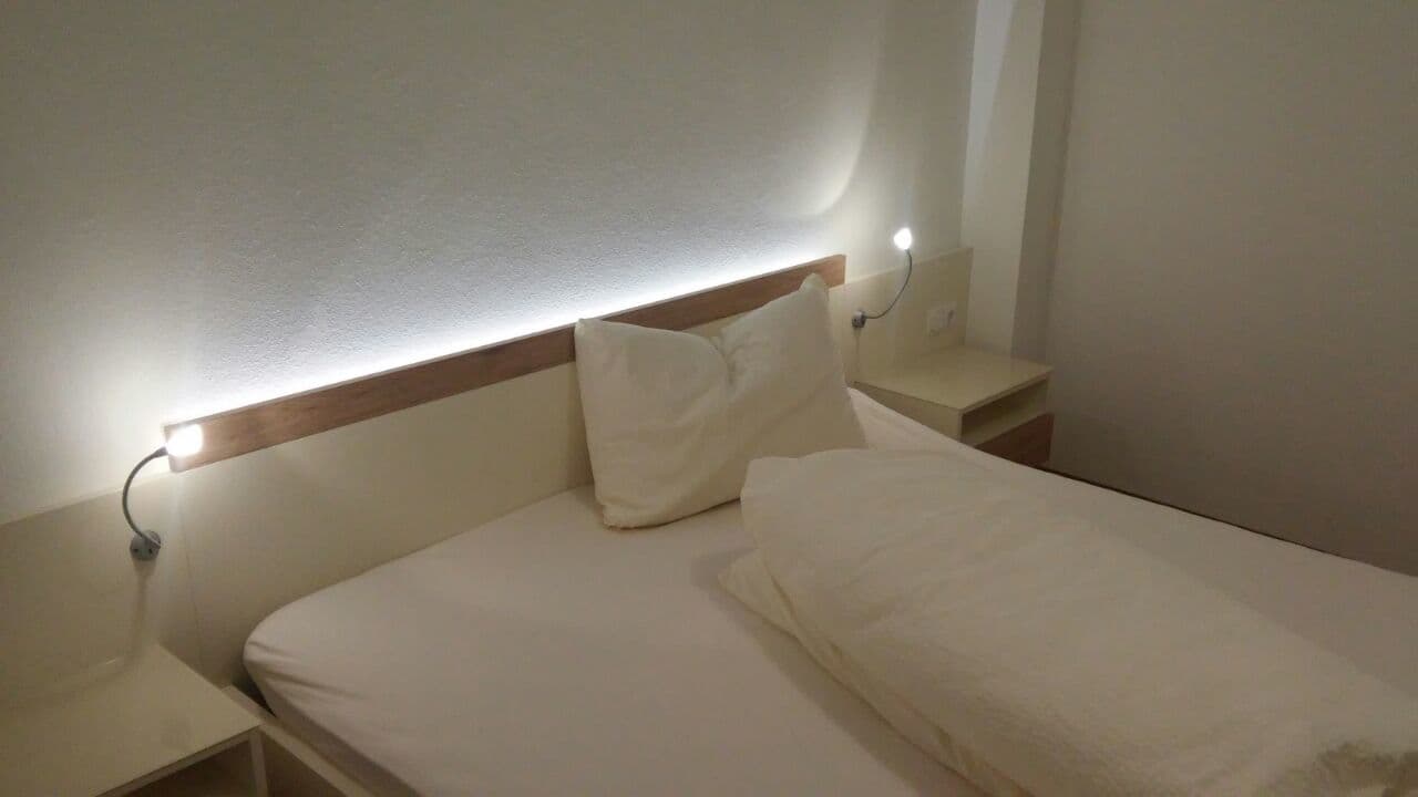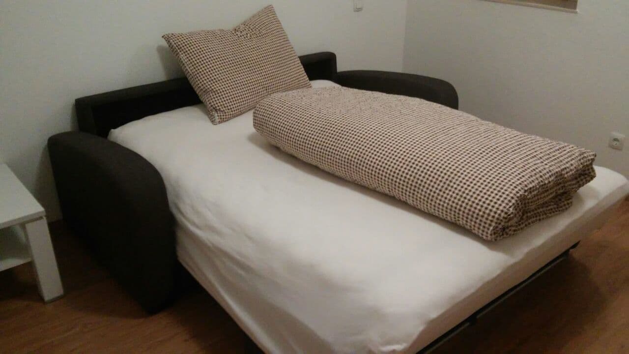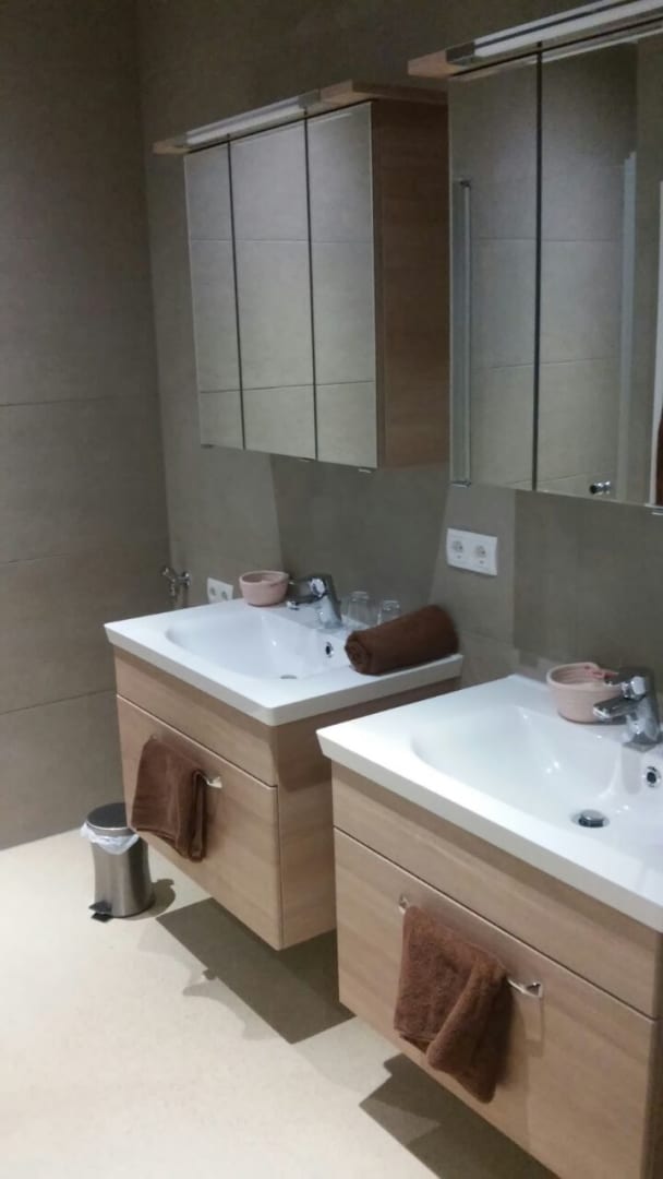 Es hat einen kleinen Vorraum, eine ausgestattete Küche mit Essecke, ein Wohnzimmer mit Doppelbett, ein Doppelzimmer, ein Badezimmer mit zwei Waschbecken und einer Dusche sowie ein separates WC. Handtücher, Bettwäsche, TV und WLAN sind vorhanden. Zustellen eines Gitterbetts ist möglich.