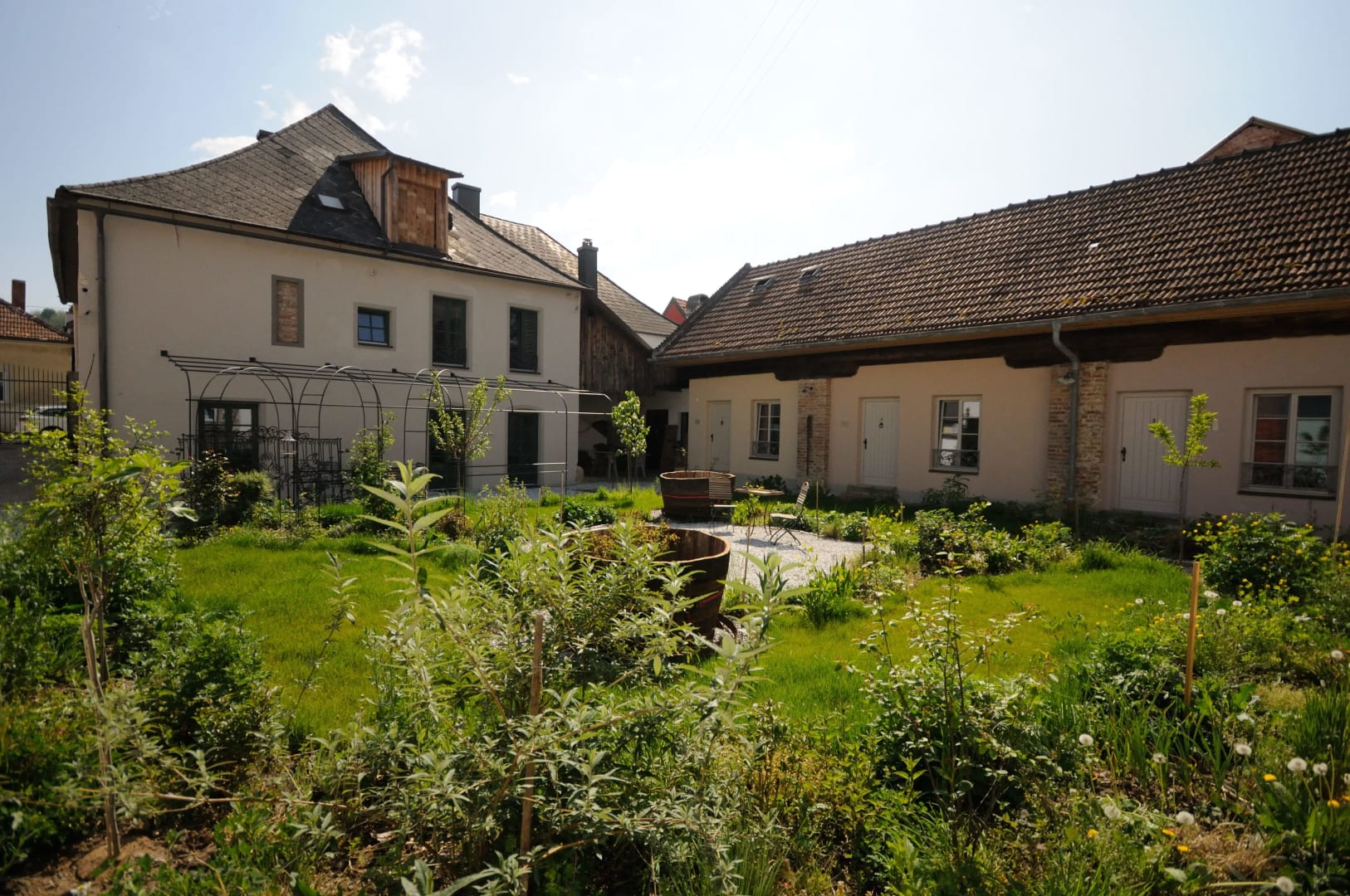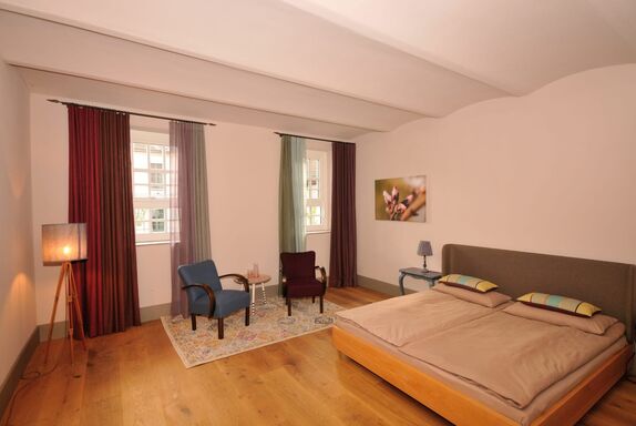 Rund um den Attriumhof haben wir 5 Genießerzimmer in ehemaligen Wirschaftsgebäuden angelegt. Hier können Sie in Ruhe ein Buch lesen und die Schwalben bei Ihren Flugübungen beobachten.