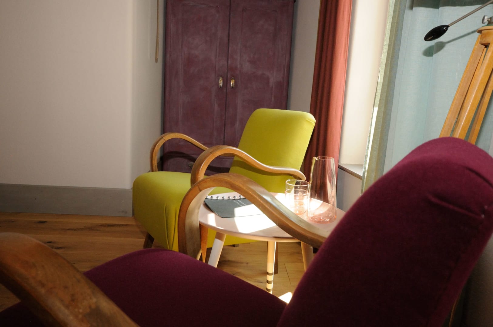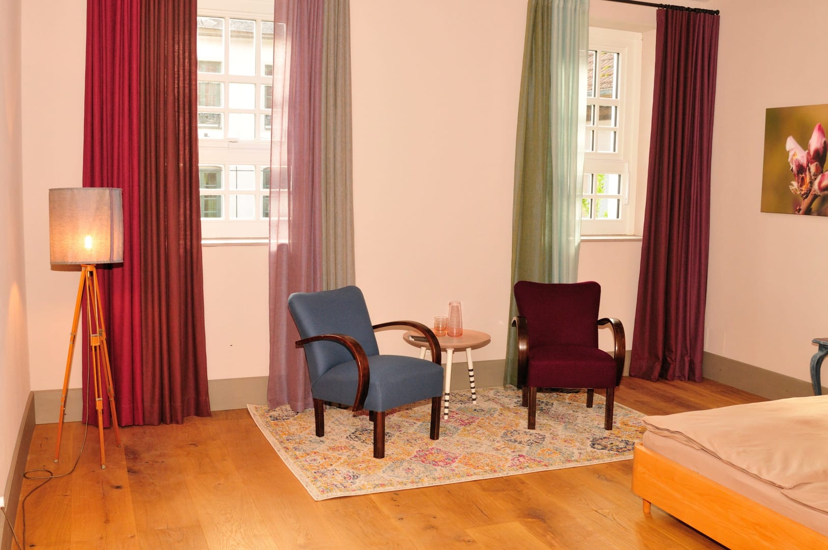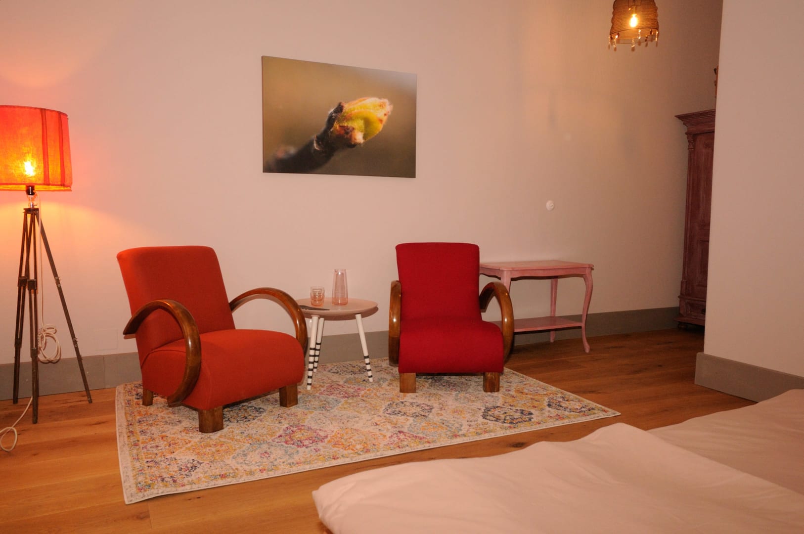 Wir haben bei der Gestaltung unserer Zimmer harmonische Farben gewählt, die gemütlichen Betten sind aus Naturmaterialien und von Grüner Erde. Lehmputz an den Wänden sorgt für ein gutes Raumklima und die geräumige Dusche sorgt für die richtige Entspannung nach sportlichen Aktivitäten