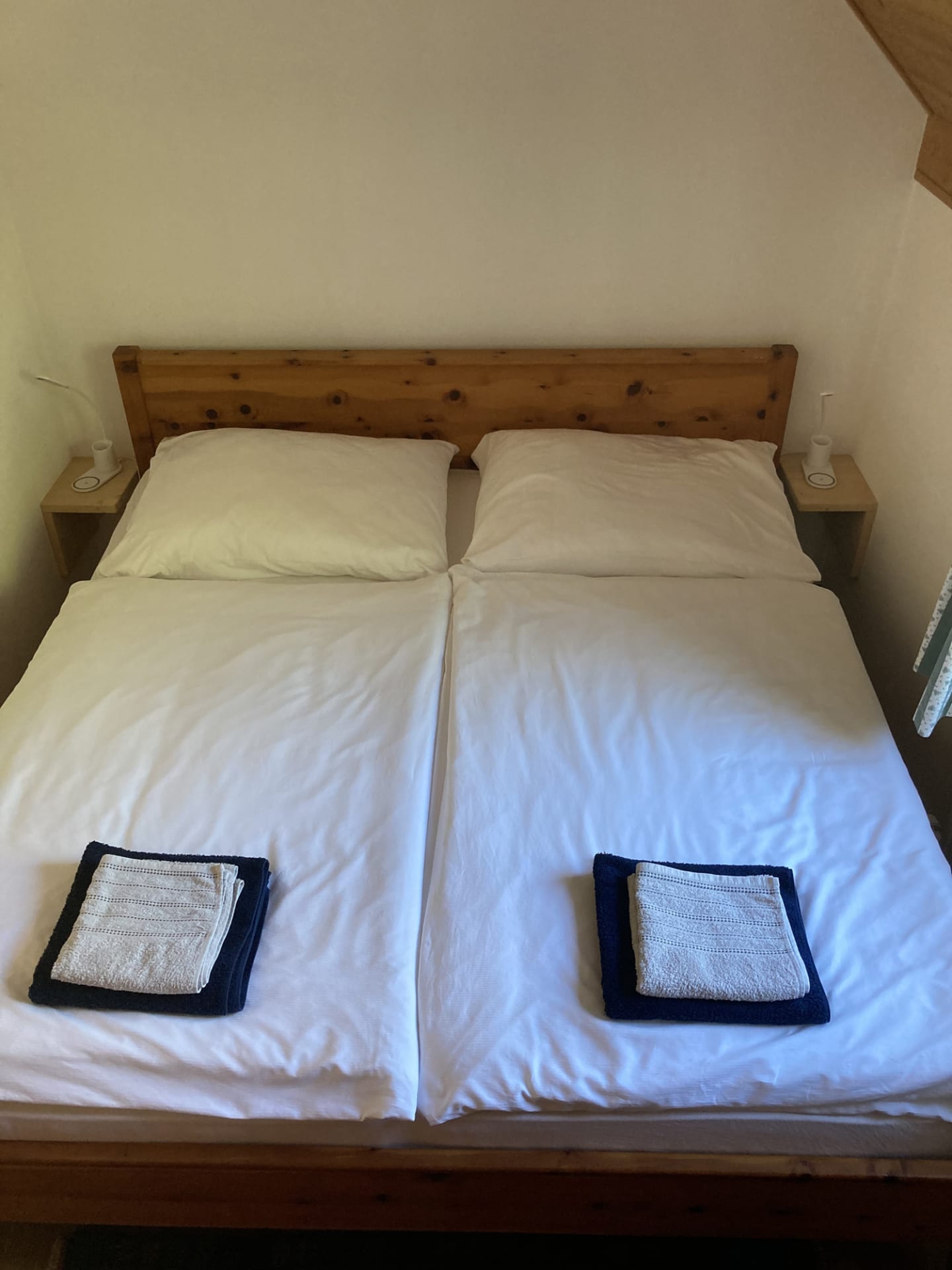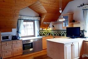 Die Küche ist mit Holzofen, Elektroherd (2 Platten), Mikrowelle, Toaster, Eierkocher, Nespresso-Maschine, Wasserkocher und Geschirrspüler ausgestattet. TV und kostenfreies W-LAN, Bettwäsche und Handtücher und Haarfön stehen zur Verfügung.