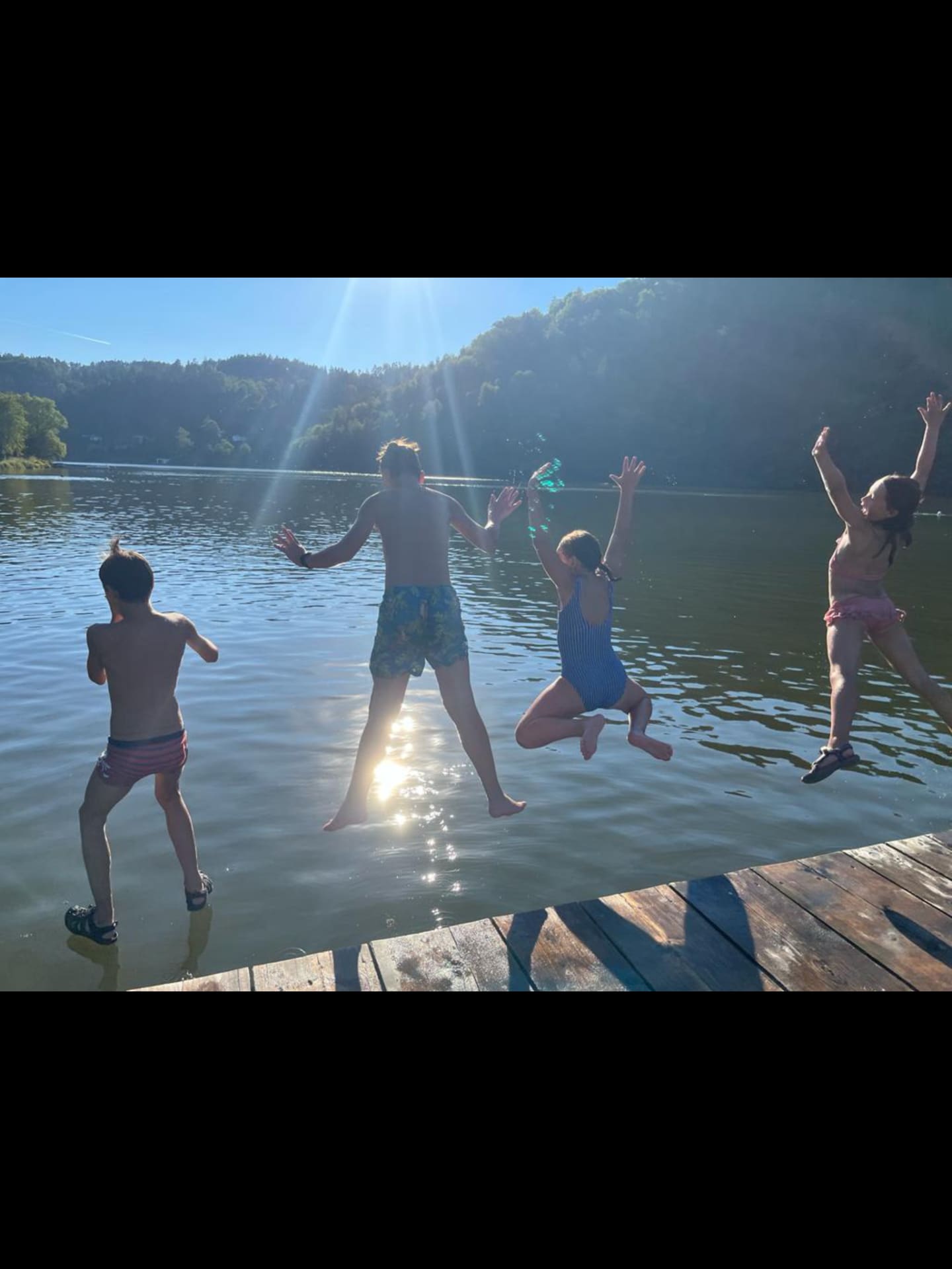 Der Stausee Thurnberg liegt nur 7 Gehminuten von uns entfernt und lädt im Sommer mit einer großen, kostenfreien Liegewiese zum Baden ein. Bei Schönwetter ist dort auch für Verpflegung gesorgt.