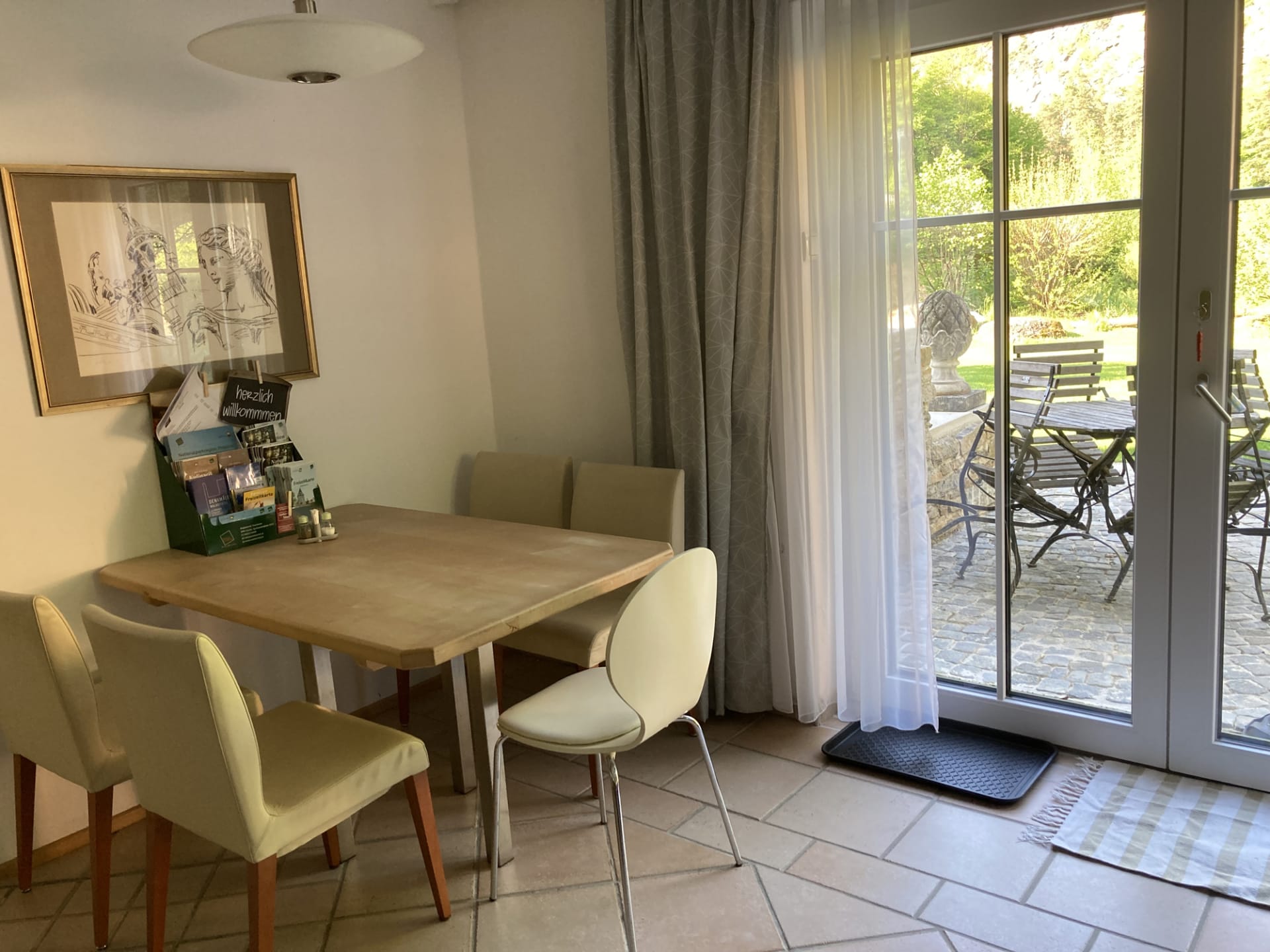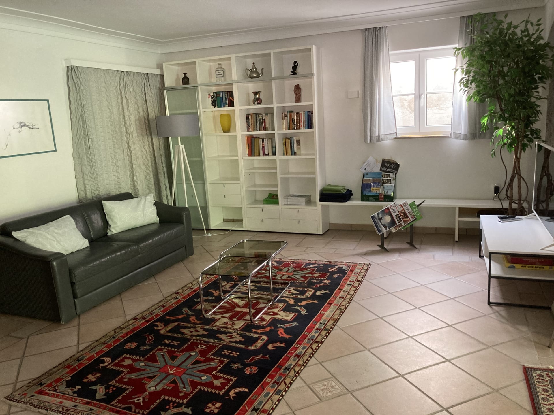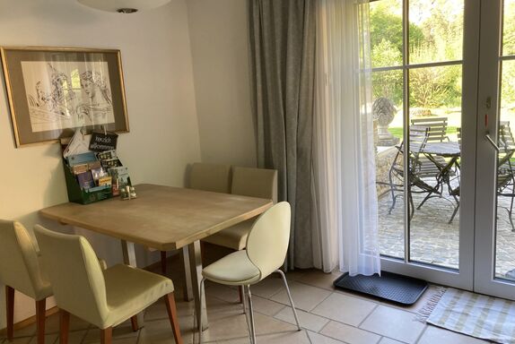 Unser geräumiges Gartenstudio (80 m²) mit eigenem ebenerdigen Zugang in den Garten bietet auf 80 m² Platz für 2 - 4 Personen.