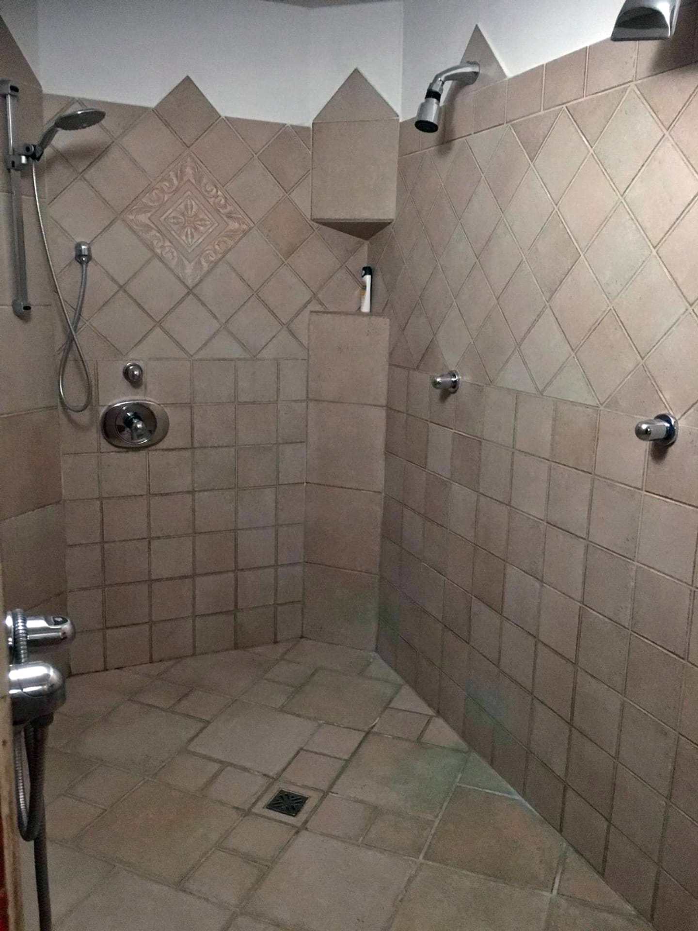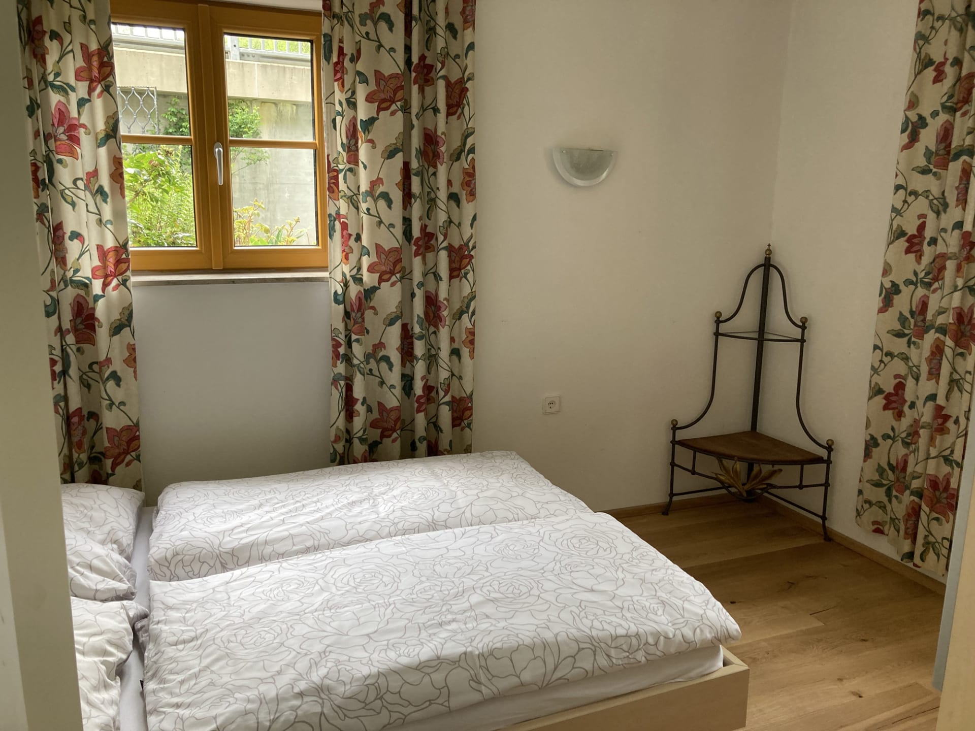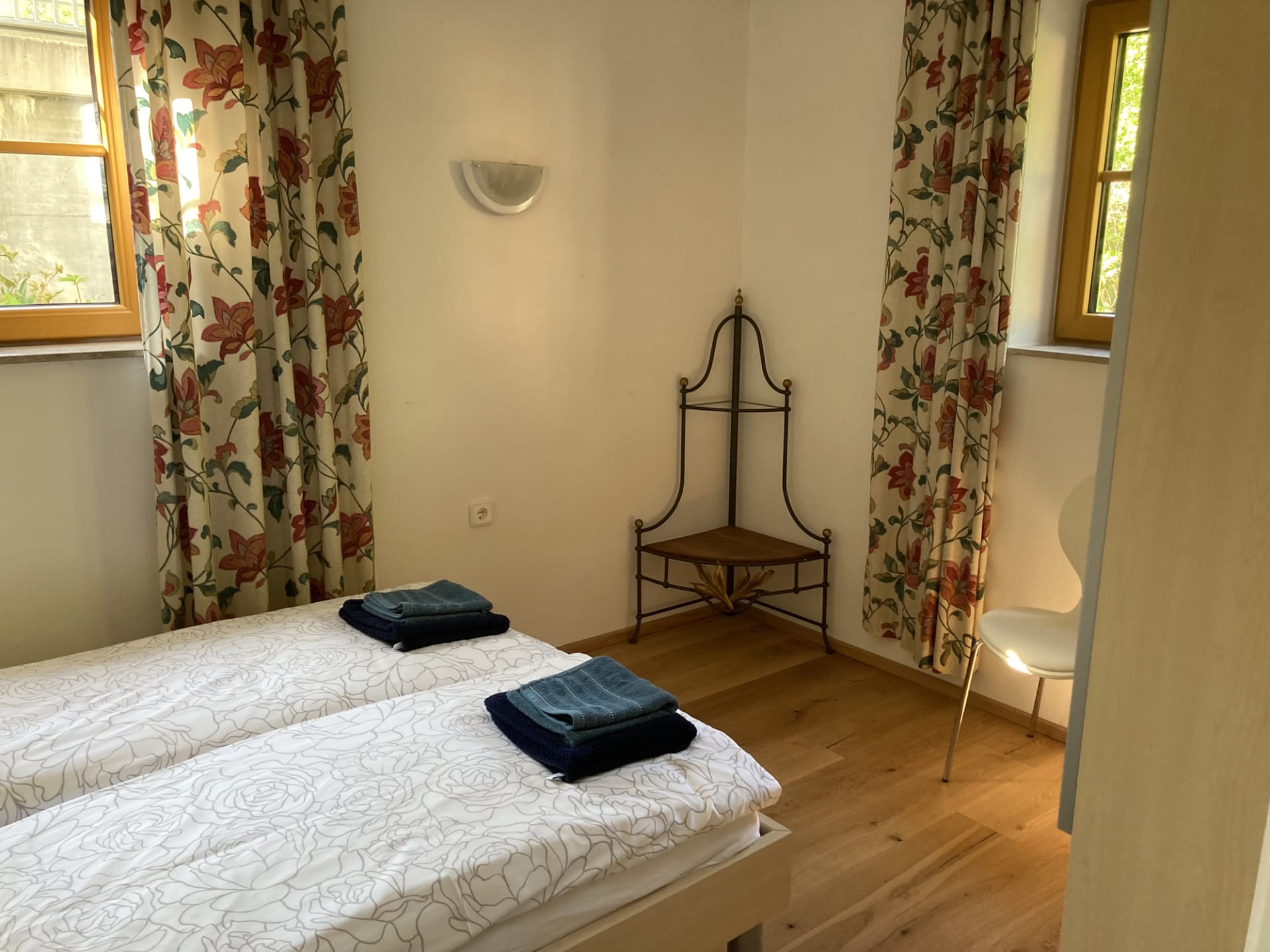 Das Doppelzimmer kann wahlweise mit Doppelbett oder 2 Einzelbetten gebucht werden, im großzügig angelegten Sanitärbereich befinden sich zwei Duschen und eine Schwallbrause mit Kaltwasser, das WC ist extra.