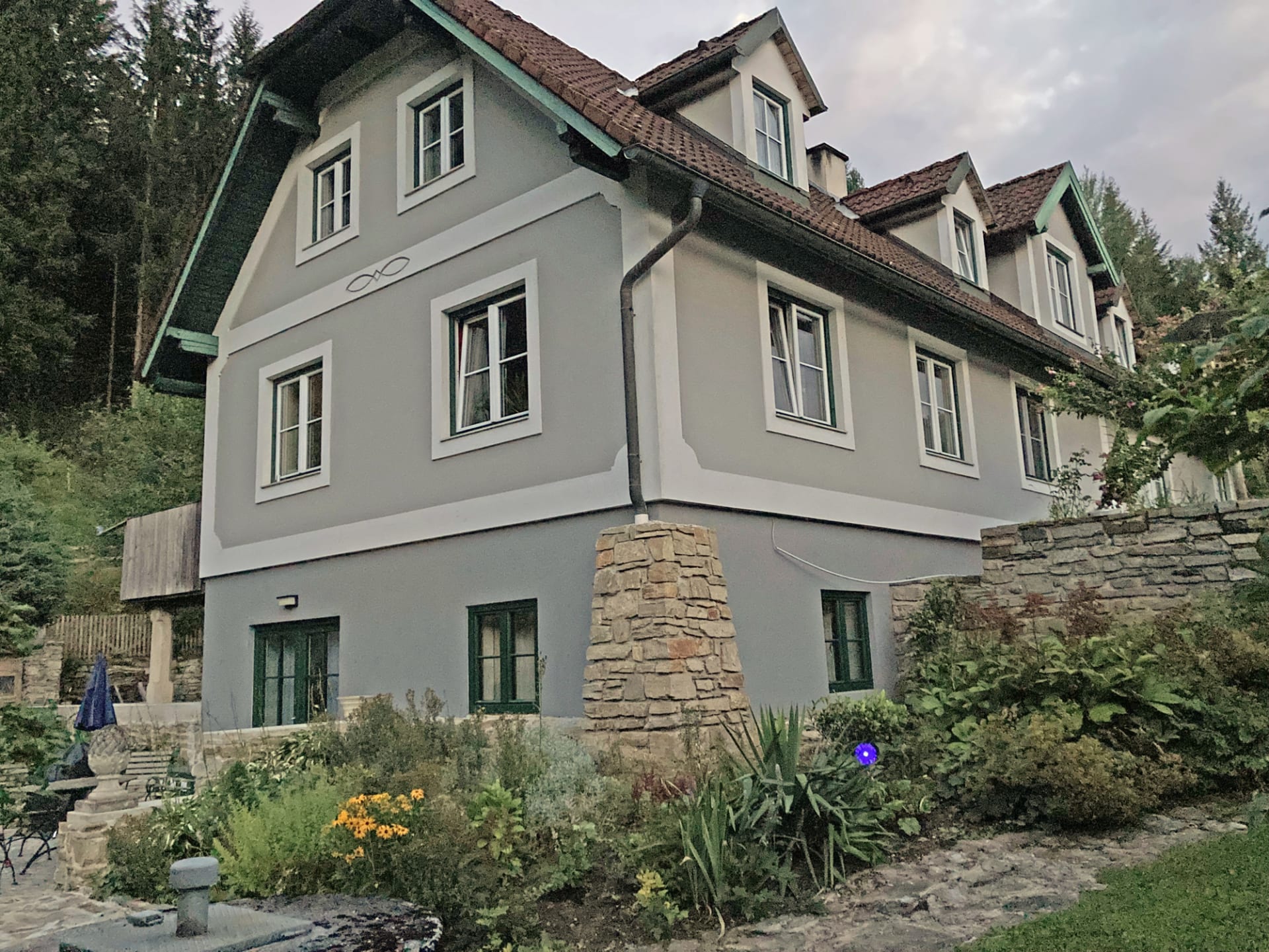Unsere ruhige Lage außerhalb der Ortschaft bietet die Möglichkeit für Spaziergänge. Der Garten bietet Erholung und Entspannung, ein Kletterturm mit Rutsche und viel Spielzeug warten auf die Kinder.