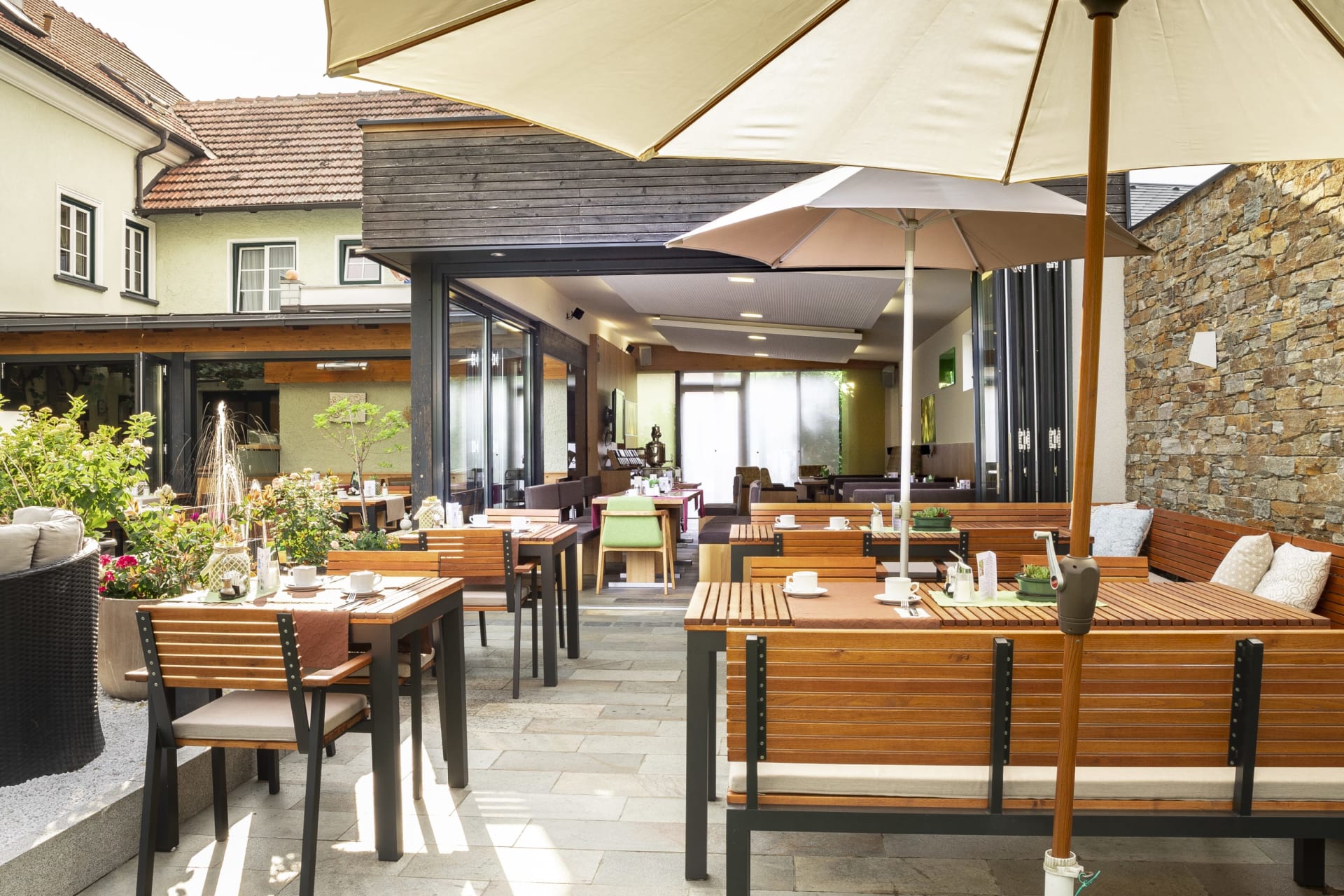 Unsere einzigartige Lage besticht durch den Blick auf die Jahrhunderte alten Weinterrassen des Setzberges. Dazu ist unser Betrieb ein idealer Ausgangspunkt für Golfbegeisterte, Wanderer und Kulturinteressierte.