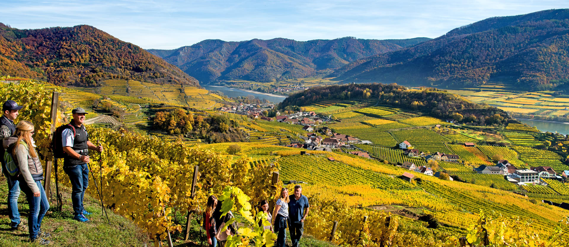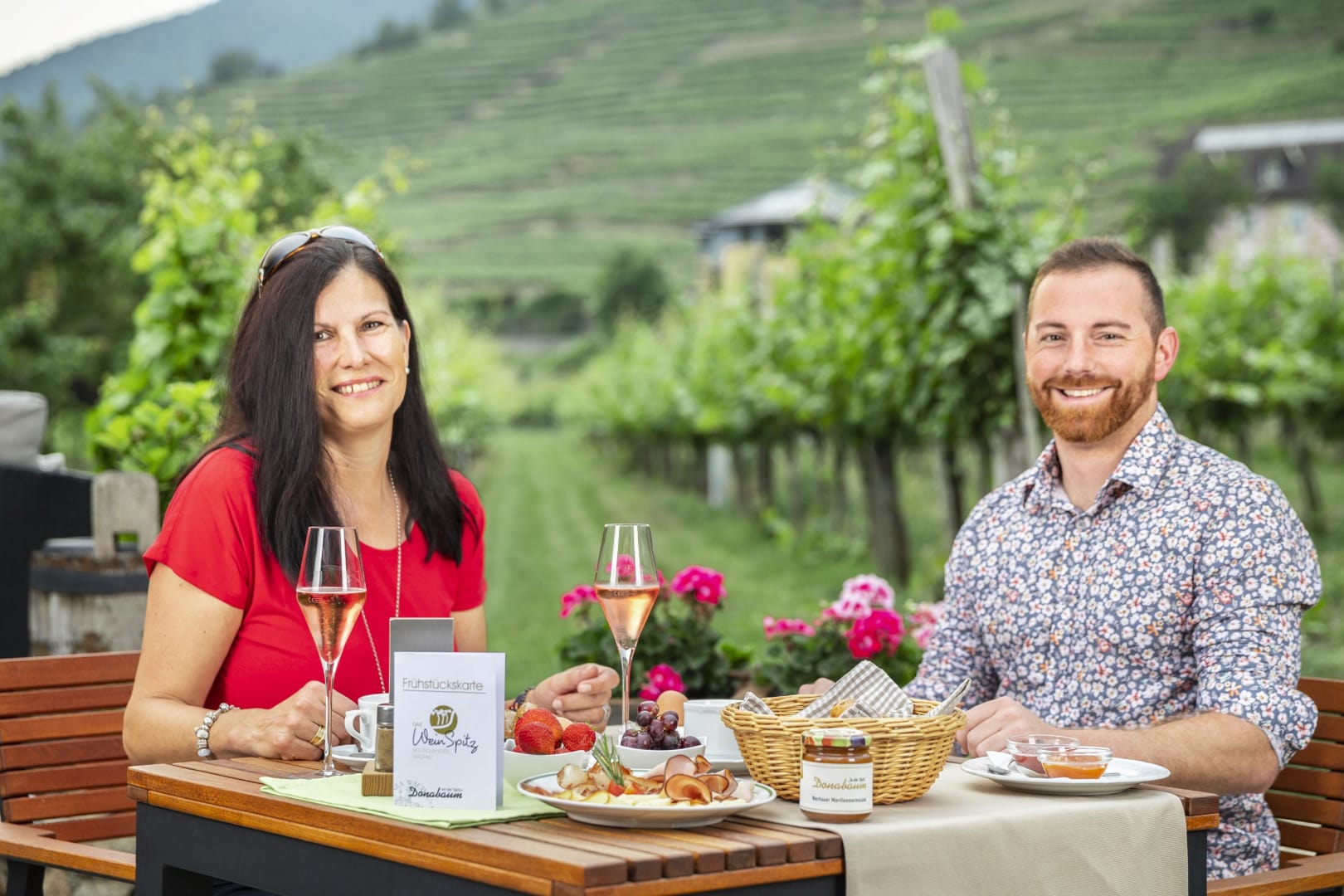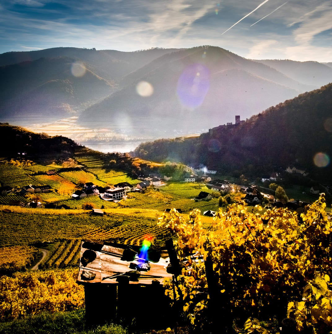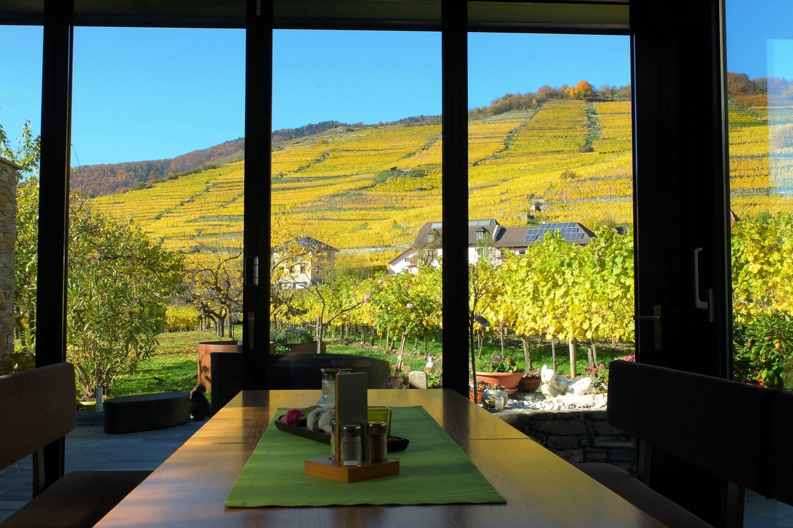 Ein herrlicher Blick auf die Ruine Hinterhaus und auf die Weingärten erwartet Sie!
