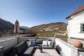 Zum Verweilen und Erholen inmitten der traumhaften Kulisse der Wachauer Weinberge laden ein großzügiger beheizbarer Edelstahl-Infinity-Pool und ein Saunahaus mit einer Sauna und eine Infrarotkabine im Garten, sowie ein idyllischer Loungebereich mit herrlichem Ausblick ein.