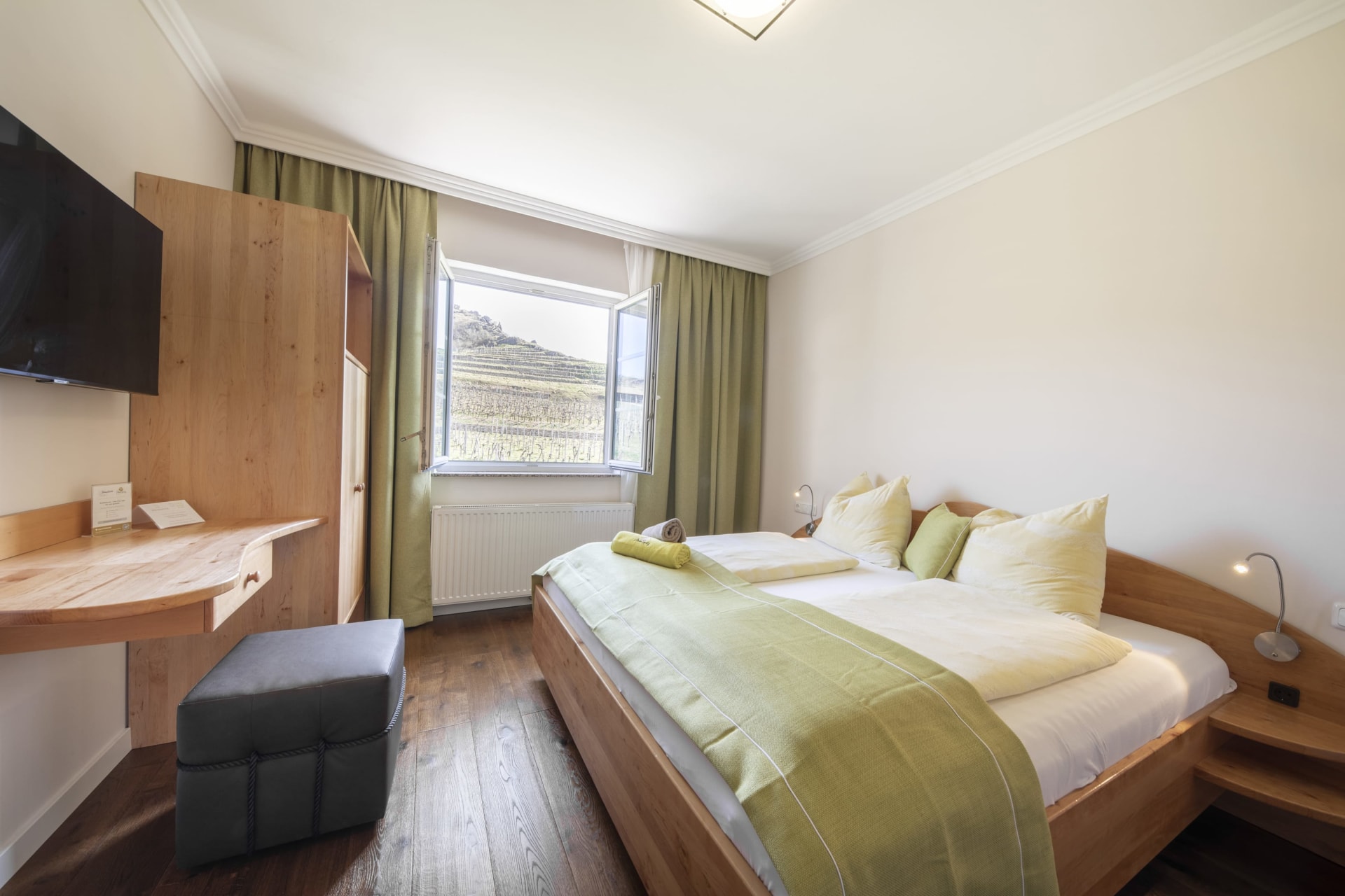 Wohnen Sie im Stammhaus am Weingut in den gemütlichen Zimmern oder im neuen WeinSpitz in den modernen klimatisierten Zimmern. Alle Zimmer verfügen über einen herrlichen Blick in die Weingärten ringsum.