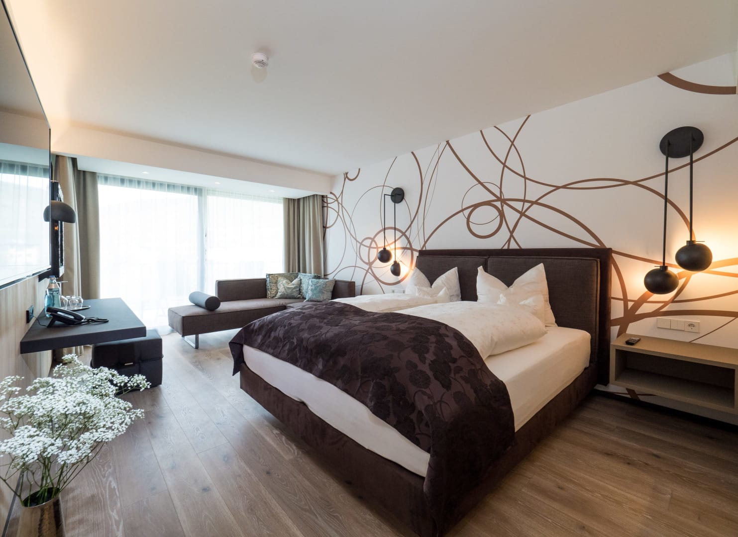Die ca. 35 m² großen Suiten befinden sich im Boutiquehotel WEINSPITZ und sind stillvoll mit heimischen Hölzern, einem Holzfußboden, einem Balkon, einem großzügigen Bad mit einer Regendusche und separatem WC, einer Klimaanlage und einem Boxspringbett ausgestattet.