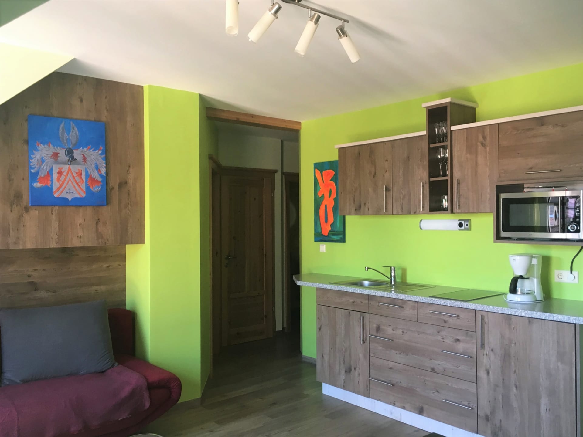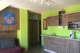 Die Wohnung ist ca. 56 m² groß und verfügt über 2 Schlafzimmer, WC, Badezimmer mit Dusche, einer Wohnküche mit Esstisch für 6 Personen, einer Ausziehcouch, sowie einem Fernsehgerät und Kleinigkeiten, die man für einen durchschnittlichen Aufenthalt benötigt, beispielsweise Essig, Öl, Zucker und Salz.