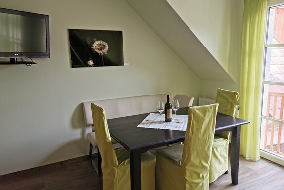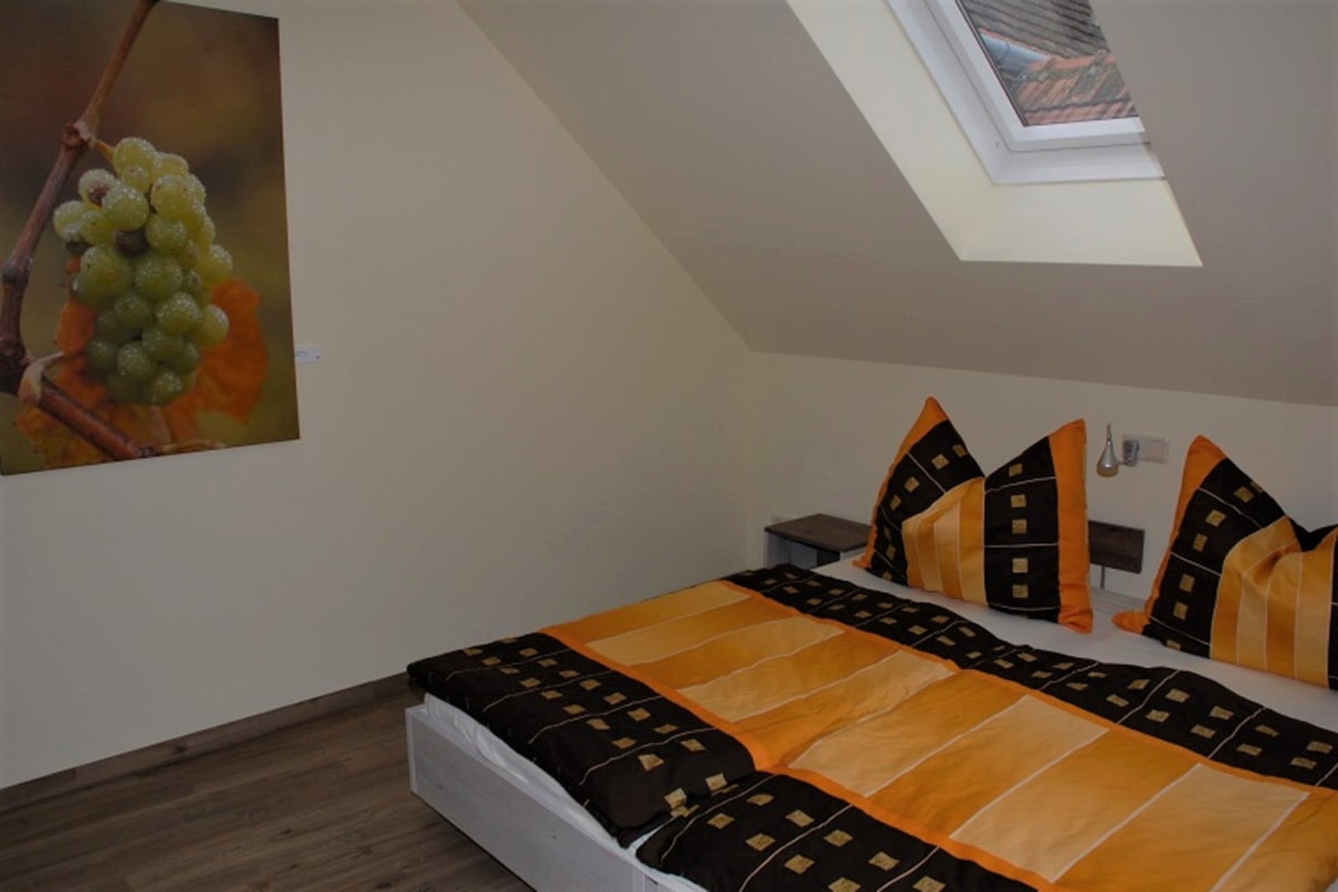 Unsere Ferienwohnung erinnert an eine unserer bedeutendsten Rebsorten „Grüner Veltliner“. Sie spiegelt das Braun des Rebholzes, Grün der Blätter und das Goldgelb der reifen Trauben wider.