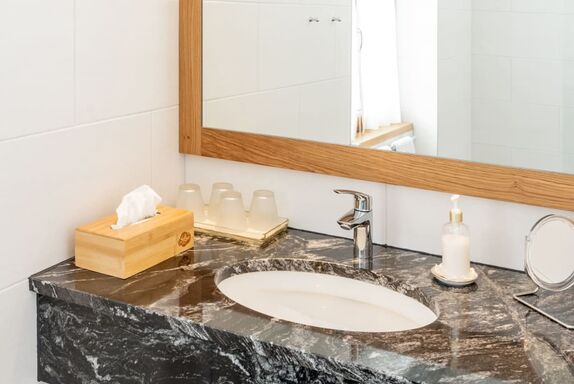 In der Ferienwohnung ist eine Dusche, Fön, Kosmetikspiegel und eine seperate Toilette  und natürlich eine vollausgestattete Küche.