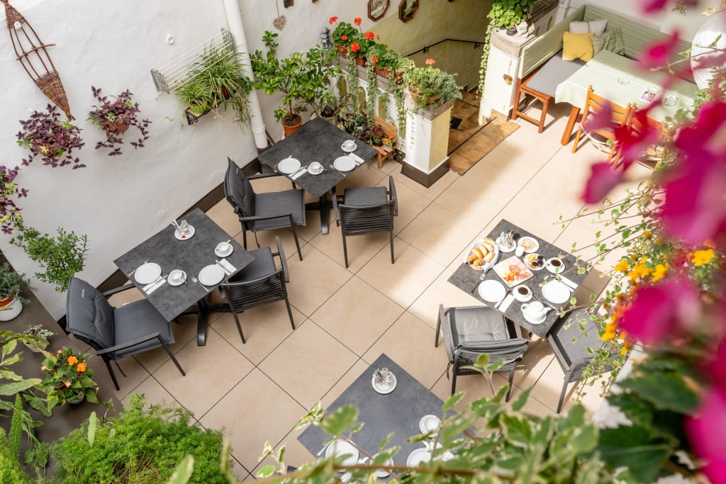 Unsere Hausgäste können in unserem Arkadenhof Frühstücken oder am Abend bei einem Glasserl Wein von unseren Winzern in der Nähe gemütlich zusammensitzen.