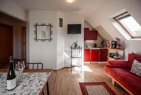 Kaffeemaschine, Minibackofen, Kühl- Gefrierschrank 2 Herdplatten, Toaster, Wasserkocher. Bettwäsche, Dusch- und Handtücher vorhanden.