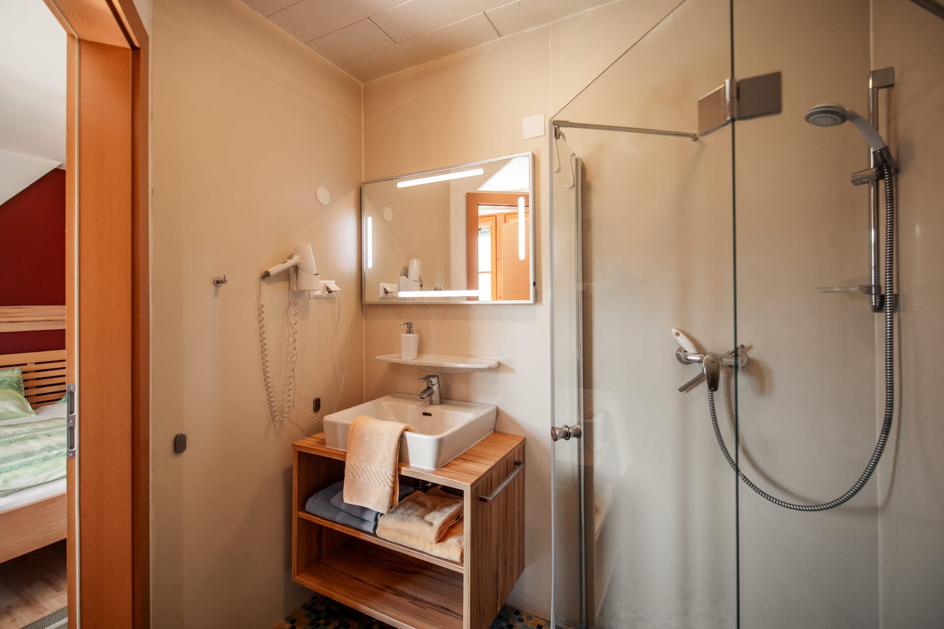 Kaffeemaschine (Filter- und Kapselmaschine), Minibackofen, Kühl- Gefrierkombination und 2 Herdplatten. Die Betten sind bei Ihrer Anreise bereits frisch bezogen. Dusch- und Handtücher vorhanden.