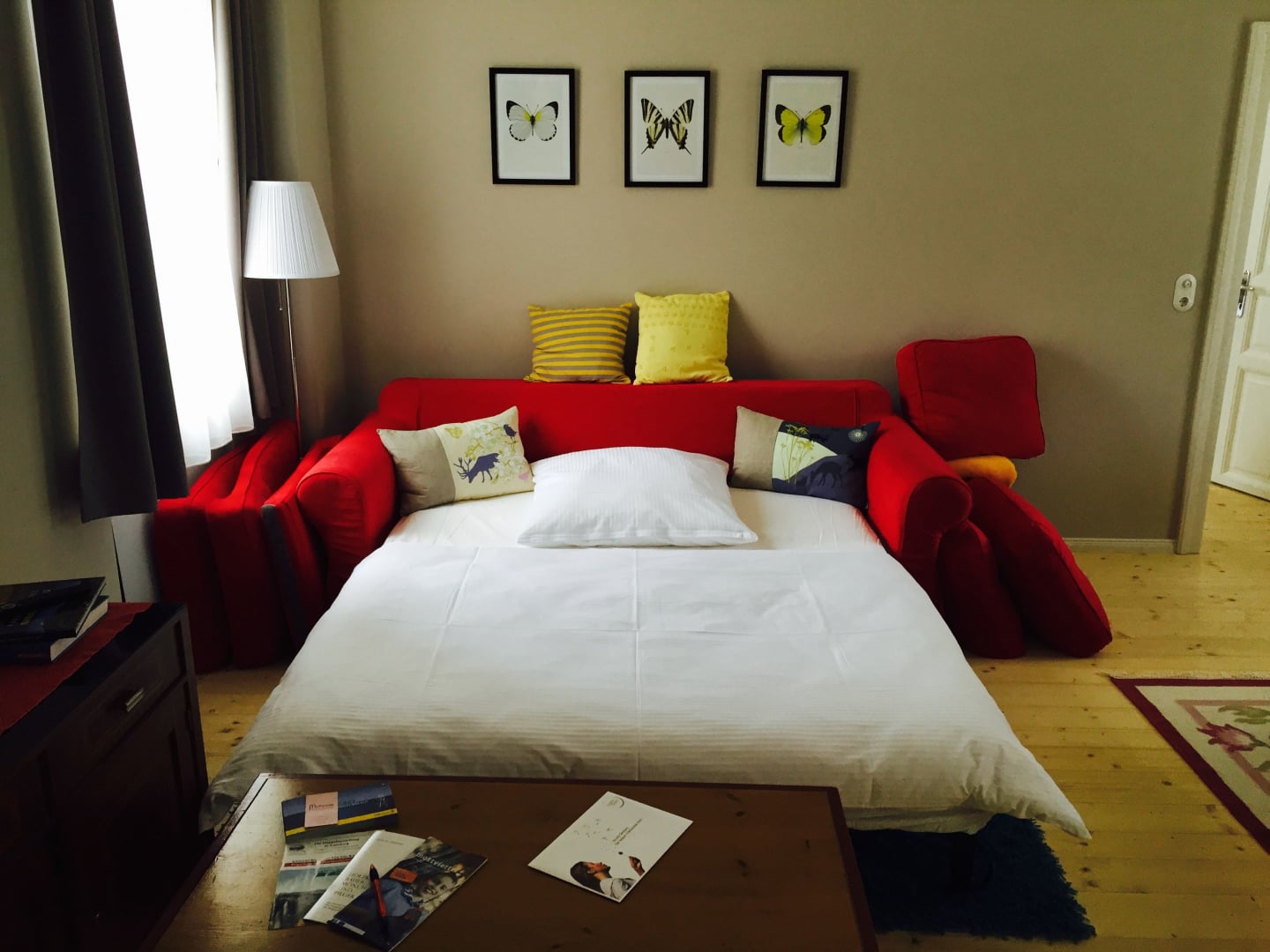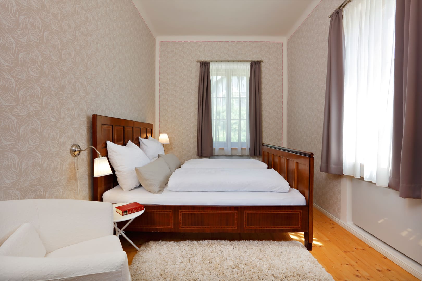 Diese Wohnung bietet Wohnküche, Schlafzimmer und Bad/WC. Im Wohnzimmer befindet sich eine Ausziehcouch. Eingerichtet ist die Wohnung in einer Mischung aus Jahrhundertwendemöbeln (aus der Zeit des Baus der Mariazellerbahn) und modernen Details. Barrierefrei, mit Kabel-TV und W-LAN.