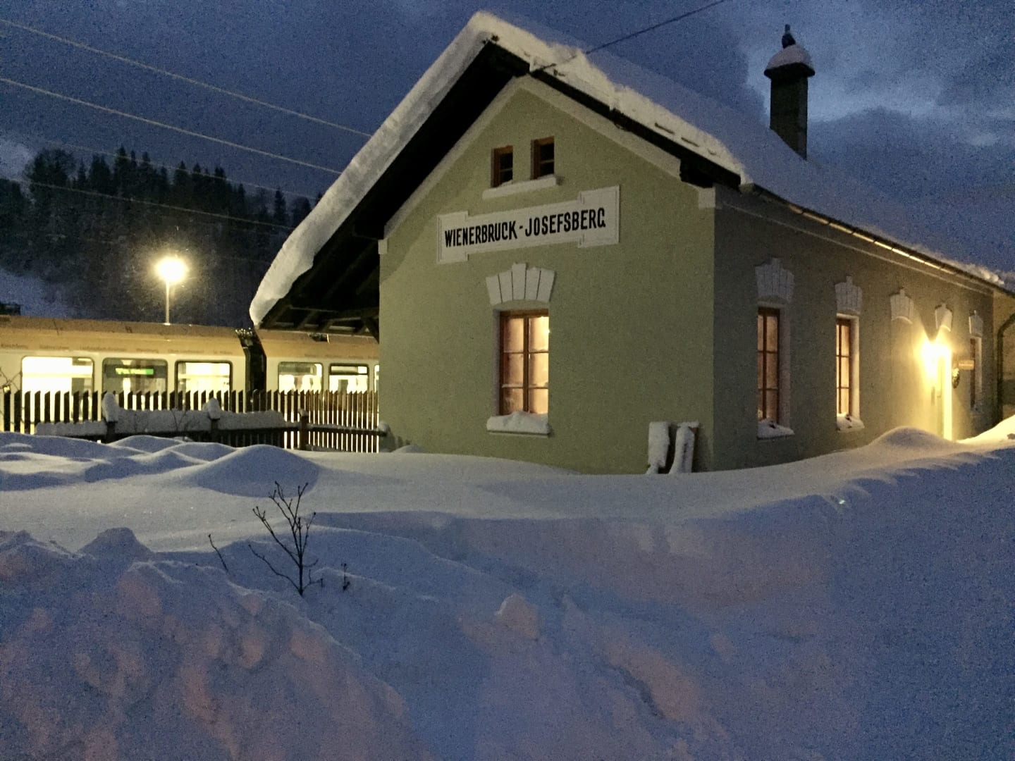 Der Bahnhof Wienerbruck ist ein Feriehaus mit zwei barrierefreien und familienfreundlichen Ferienwohnungen. Der große Garten ist komplett umzäunt und somit kinder- oder hundesicher und perfekt zum Schneemann- und Iglubauen.