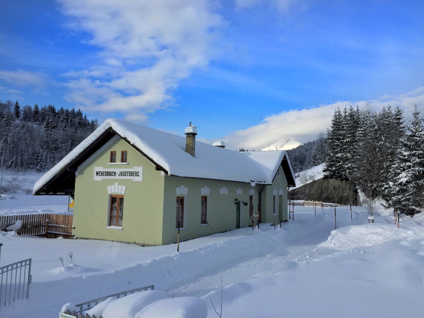 Der Bahnhof Wienerbruck ist ein Feriehaus mit zwei barrierefreien und familienfreundlichen Ferienwohnungen. Der große Garten ist komplett umzäunt und somit kinder- oder hundesicher und perfekt zum Schneemann- und Iglubauen.