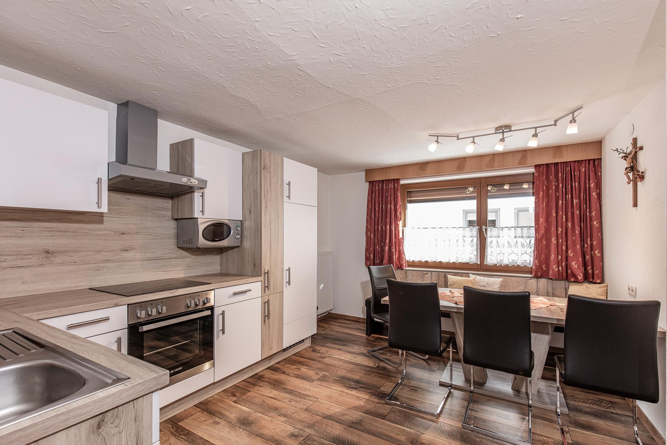 Unser geräumiges, neu renoviertes Haus mit ca. 100 m² zur Alleinnutzung besteht aus: 2 Doppelzimmer, 1 Zweibettzimmer, 1 Badezimmer im Obergeschoss mit Badewanne; 1 Badezimmer im Erdgeschoss mit Dusche; 1 separates WC. 1 vollausgestattete Küche (Geschirrspüler, Kaffeemaschine, Ceran-Kochfeld, Backrohr, Mikrowelle, Eierkocher, Wasserkocher uvm.) mit gemütlicher Essecke und 1 Tiroler Stube mit Kachelofen und Ofenbank (mit ausziehbarer Couch für 2 Personen) für gemeinsame Stunden mit Freunden und Familie.