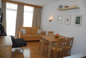 Unser gemütliches Appartement eignet sich für 1-4 Personen und ist ca. 36 m² groß. Es verfügt über 1 Doppelzimmer; 1 Wohnschlafraum bestehend aus Schlafsofa für die 3. + 4. Person, Kabel-TV und vollausgestattete Küchenzeile (2-Plattenkochfeld, Kühlschrank, Geschirrspüler, Kaffeemaschine, Wasserkocher, Esstisch, Geschirr......); Badezimmer mit Dusche/WC. Genießen Sie die Sonnenstrahlen am Balkon.