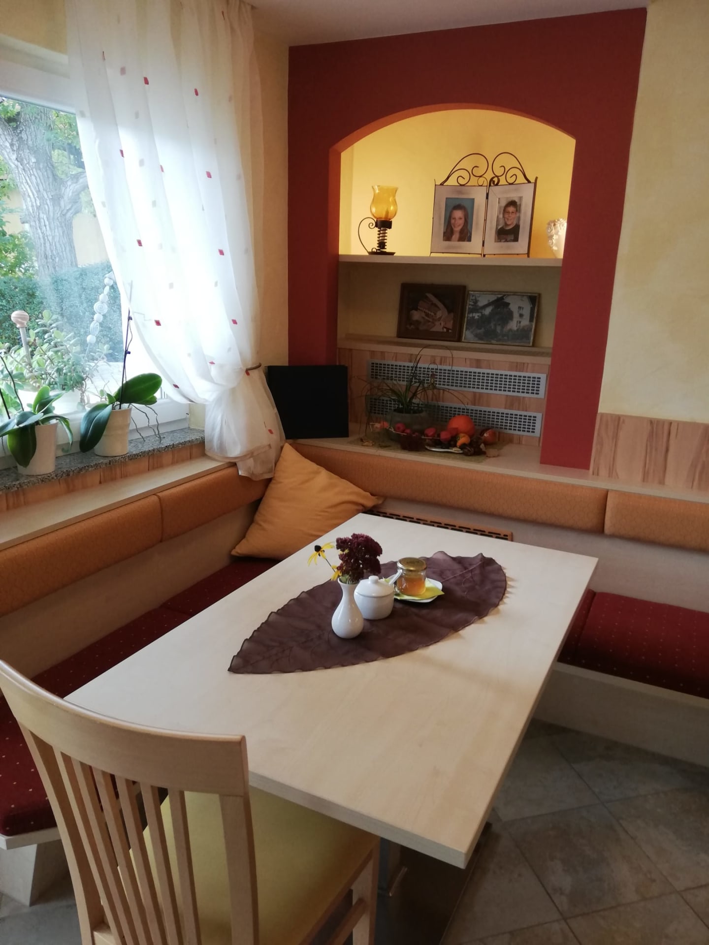 Wir bieten Ihnen viel Ruhe, 3 Gästezimmer mit Balkon, gemütlich eingerichtet, ein ausgezeichnetes, abwechslungsreiches Frühstück mit selbstgemachten Marmelade, Honig vom Schwiegervater und vielem mehr, Gästekühlschrank und Kaffeemaschine.