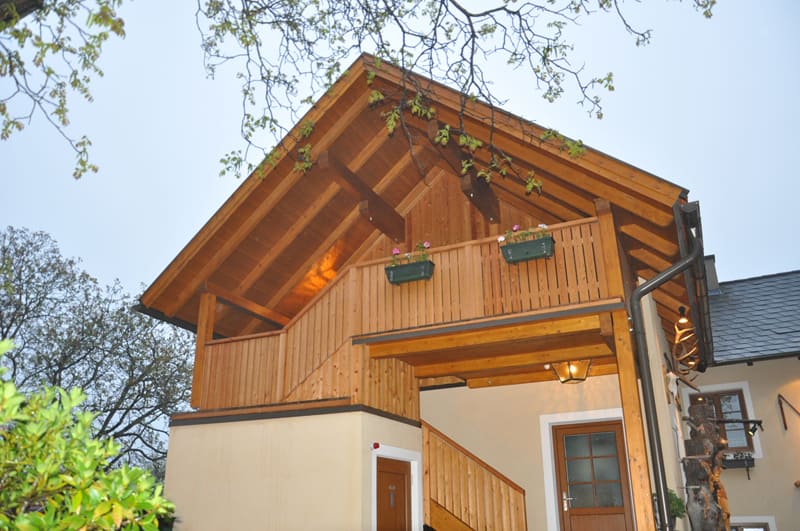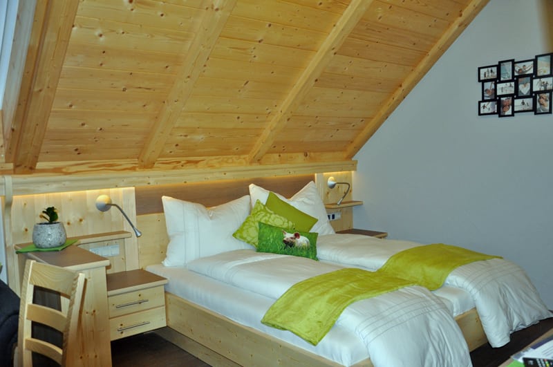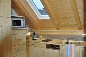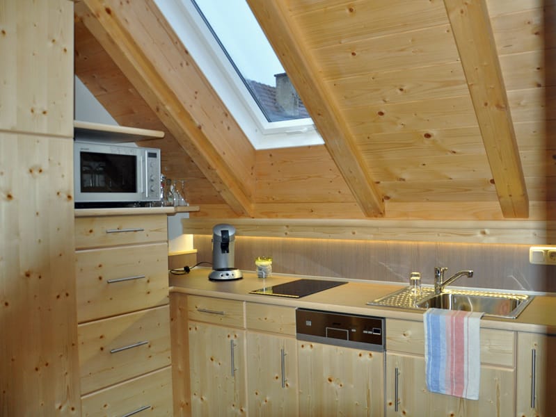 Modern, hell eingerichtete Ferienwohnung im Dachgeschoss mit Naturholzmöbeln und schönem Terrassenbalkon. Schlafsofa für 2 Kinder. WLAN, Sat-TV, Geschirrspüler, Kaffeemaschine, Mikro-Backrohr