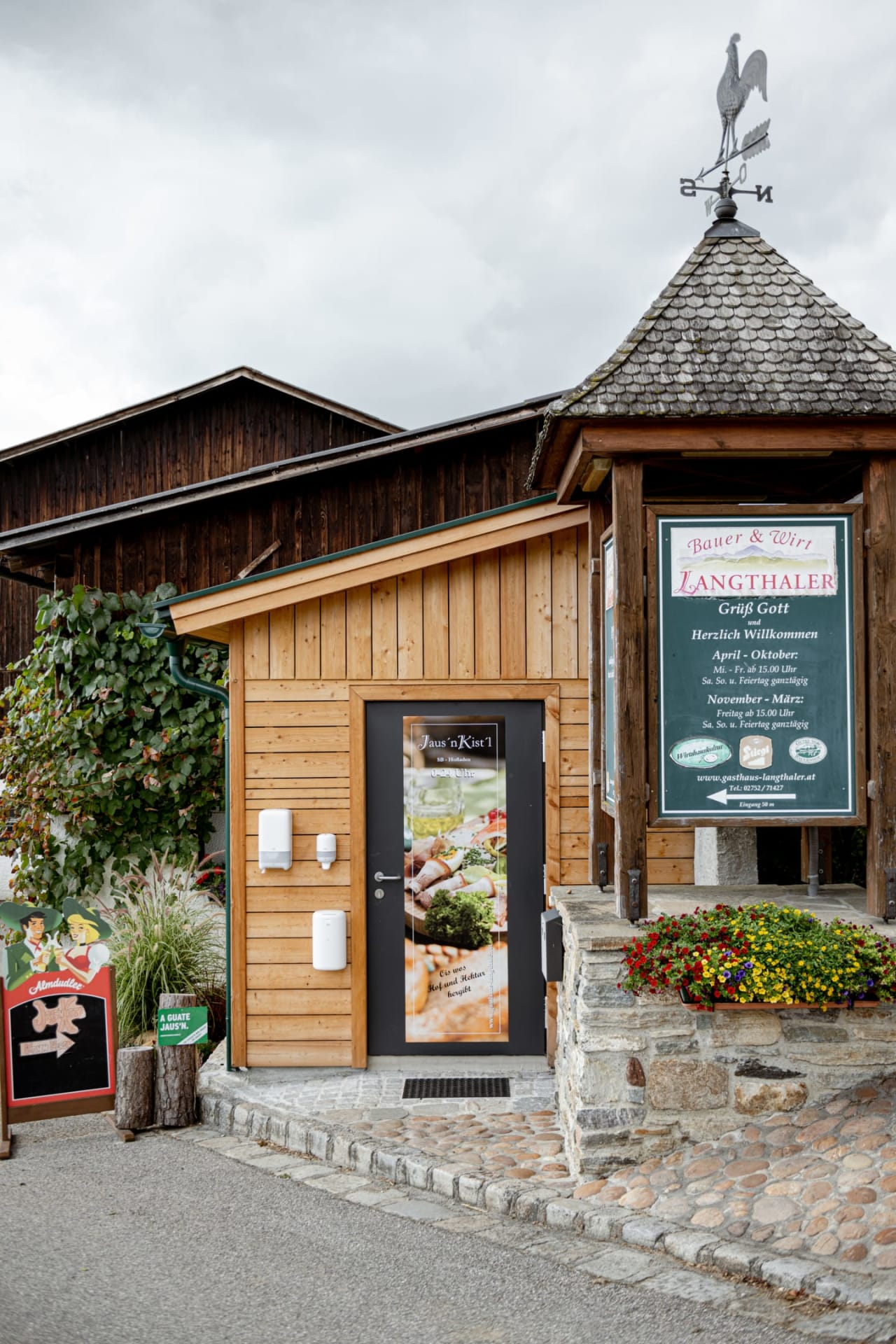 Für Frühstück, Mittag- oder Abendessen gibt es einen kleinen feinen Ab-Hof-Verkauf. Im angeschlossenen eigenen Gastbetrieb kannst Du während der Öffnungszeiten regionale Schmankerl genießen.