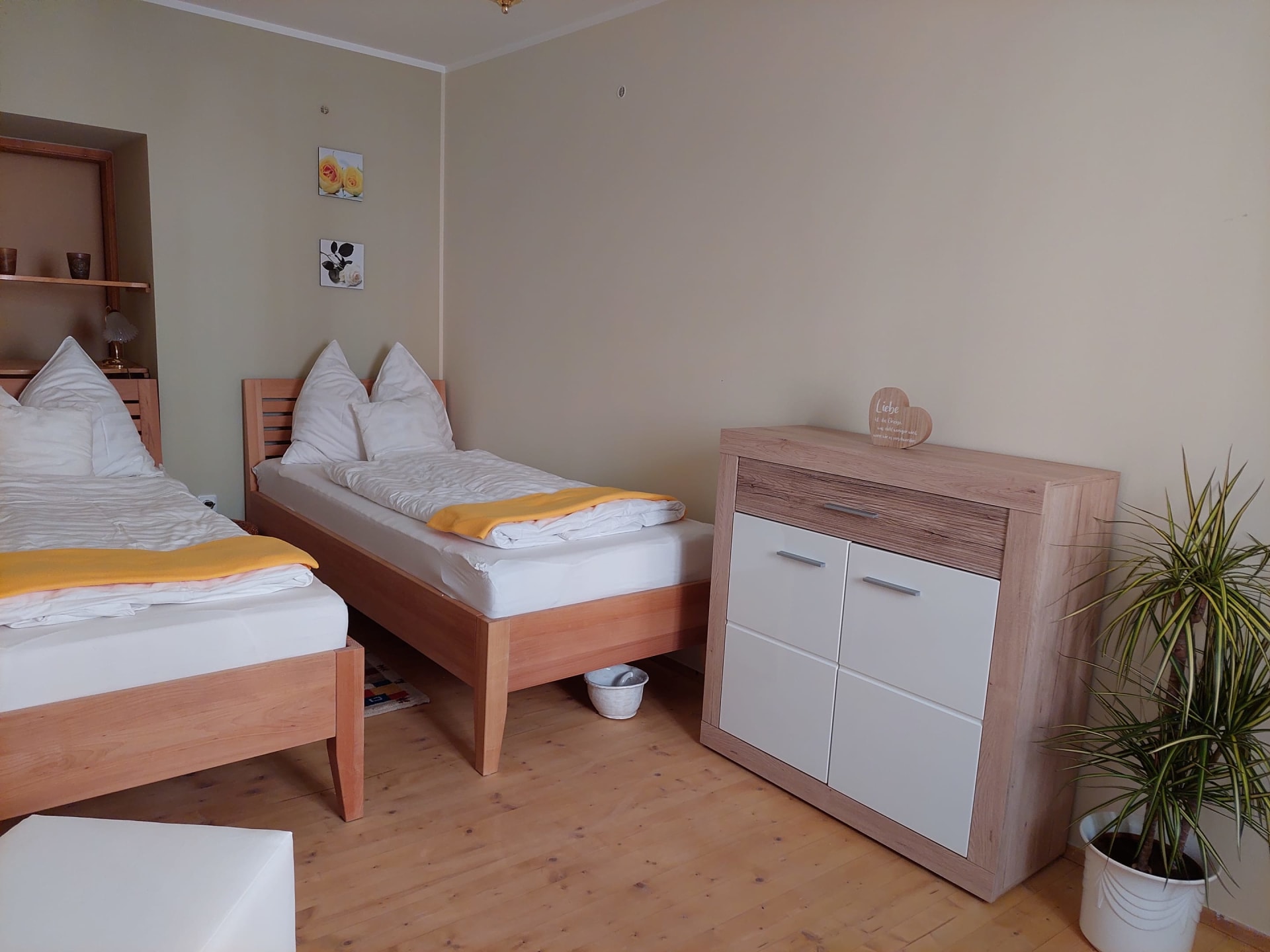 Die Ferienwohnung ist ein komplettes Wohnhaus , sie ist im Landhausstil eingerichtet und besteht aus 2 Schlafräumen 1 großen Wohnküche Vorraum Dusche und WC. Die Räume sind mit Vollholzmöbel und Parkettböden ausgestattet. Eine große Terrasse ermöglicht Ihnen einen träumerischen Ausblick. Die Schlafräume sind je nach Wunsch getrennt begehbar oder mit Verbindungstür zu nutzen.