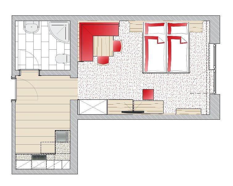 APPARTEMENT III Unser neu errichtetes Appartement DUE“ besteht aus: 1 Wohn- Schlafzimmer mit kuscheligem Doppelbett, TV und Essbereich; voll ausgestattete Küche mit Geschirrspüler, Kaffeemaschine, Cerankochfeld, Kühlschrank uvm.; 1 Badezimmer mit Dusche/WC. Ein Gläschen Wein schmeckt auf unserem Balkon mit herrlicher Aussicht auf die umliegenden Berge besonders gut. Größe ca. 32 m².