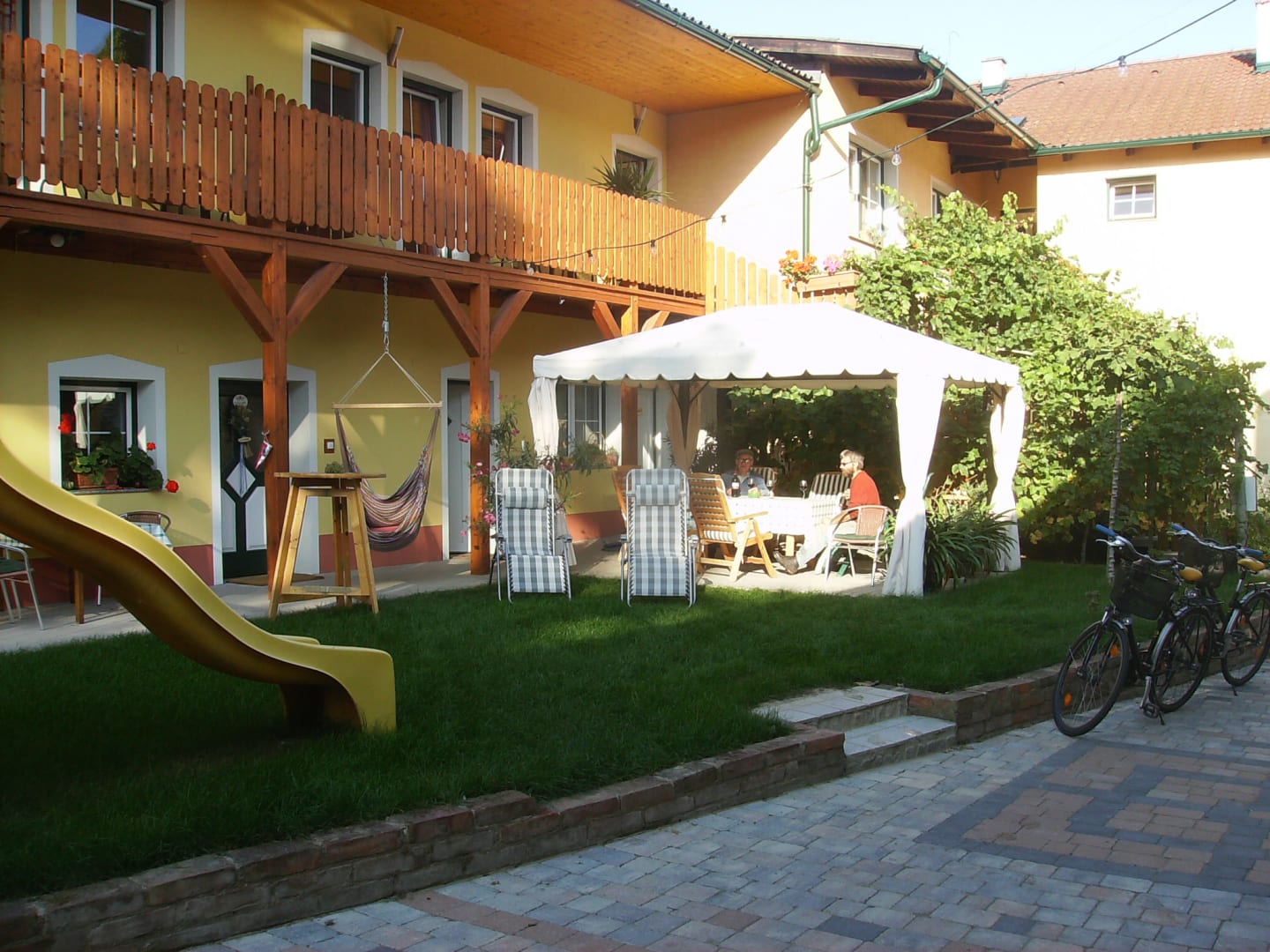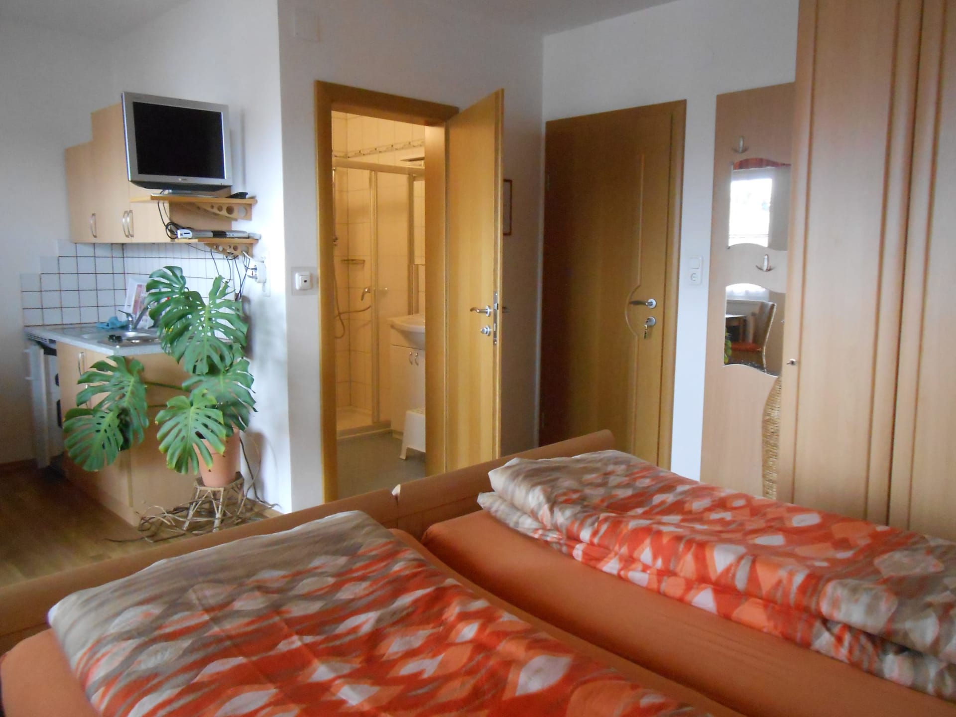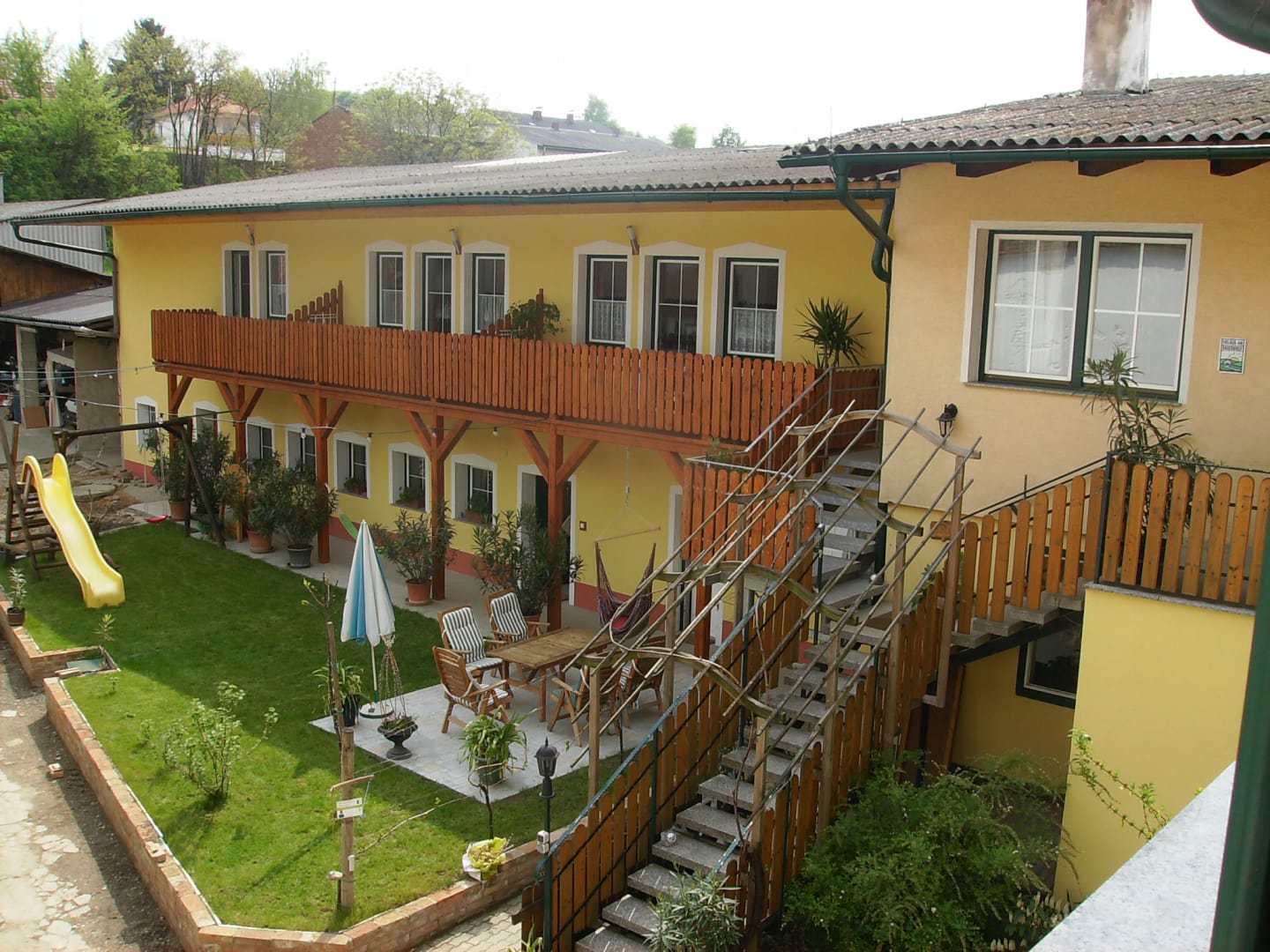 Betten mit Überlänge (210cm) als Doppelbett oder als zwei Einzelbetten verwendbar, Balkon im Innenhof, gemütlich und groß