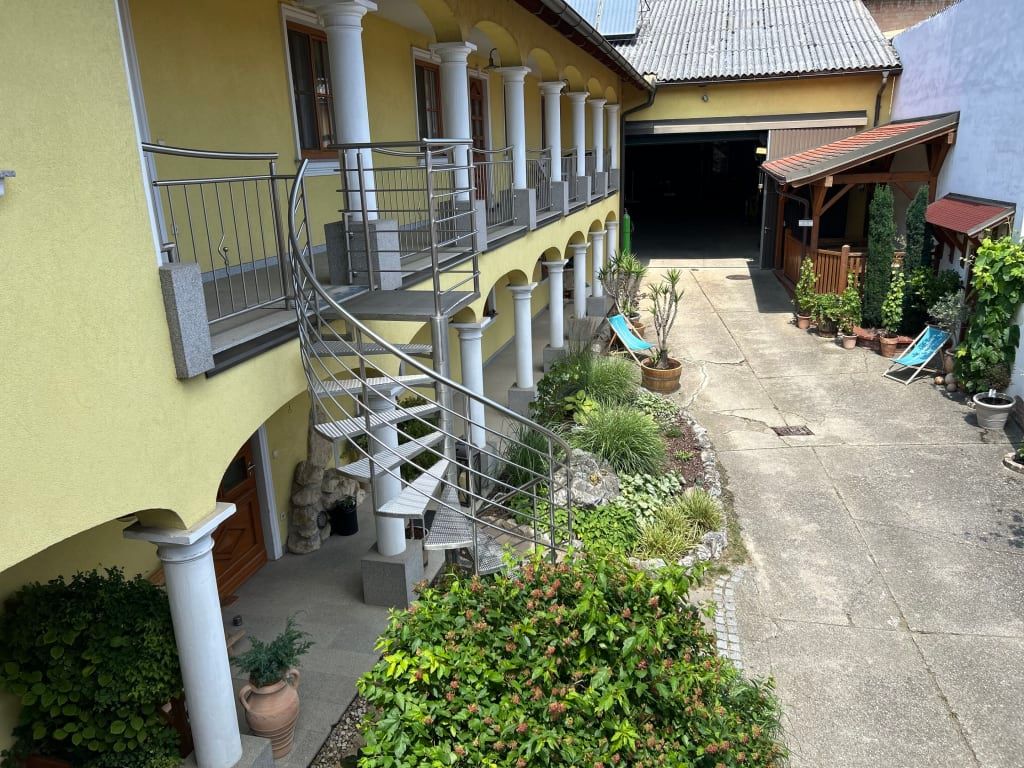 Zimmer befinden sich im ruhig gelegenen Arkadenhof, ohne Stiegen.