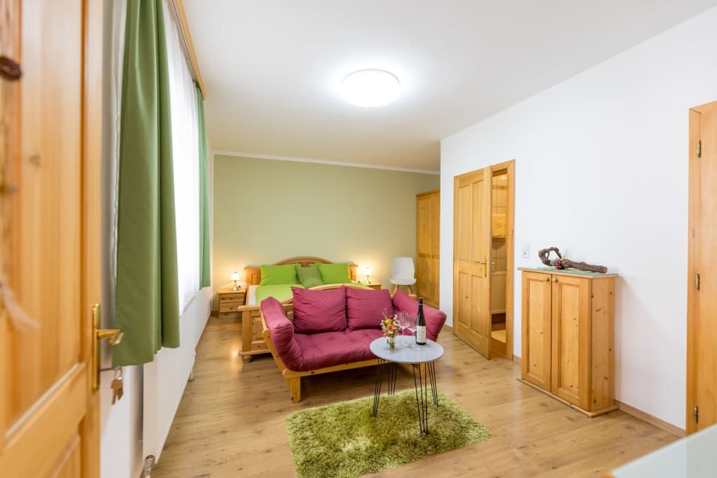 Doppelzimmer in Landhausstiel, möglichkeit für eine 3 Person auf der Couch.