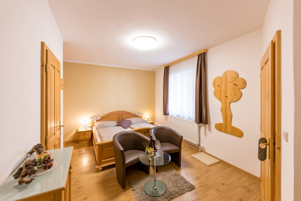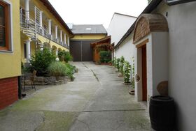 Zimmer befinden sich im ruhig gelegenen Arkadenhof, ohne Stiegen.