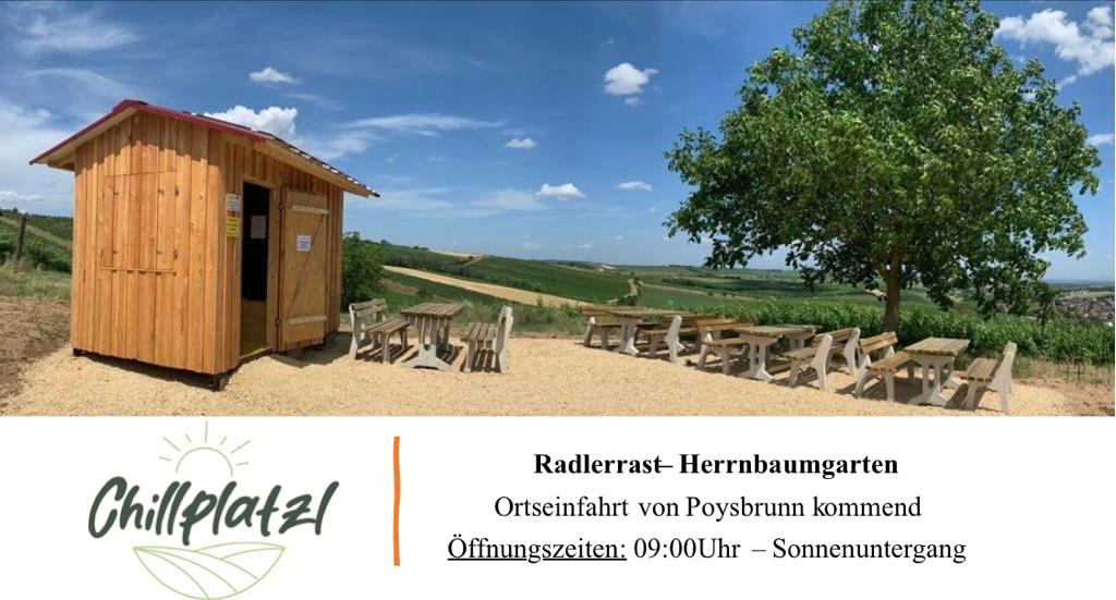 NEU AB 2023! CHILLPLATZL -> Selbstbedienungsrastplatzl für ALLE die die Aussicht über Herrnbaumgarten bis zu den Karparten geniessen möchten! Öffnungszeiten von 9.00 Uhr bis Sonnenuntergang...