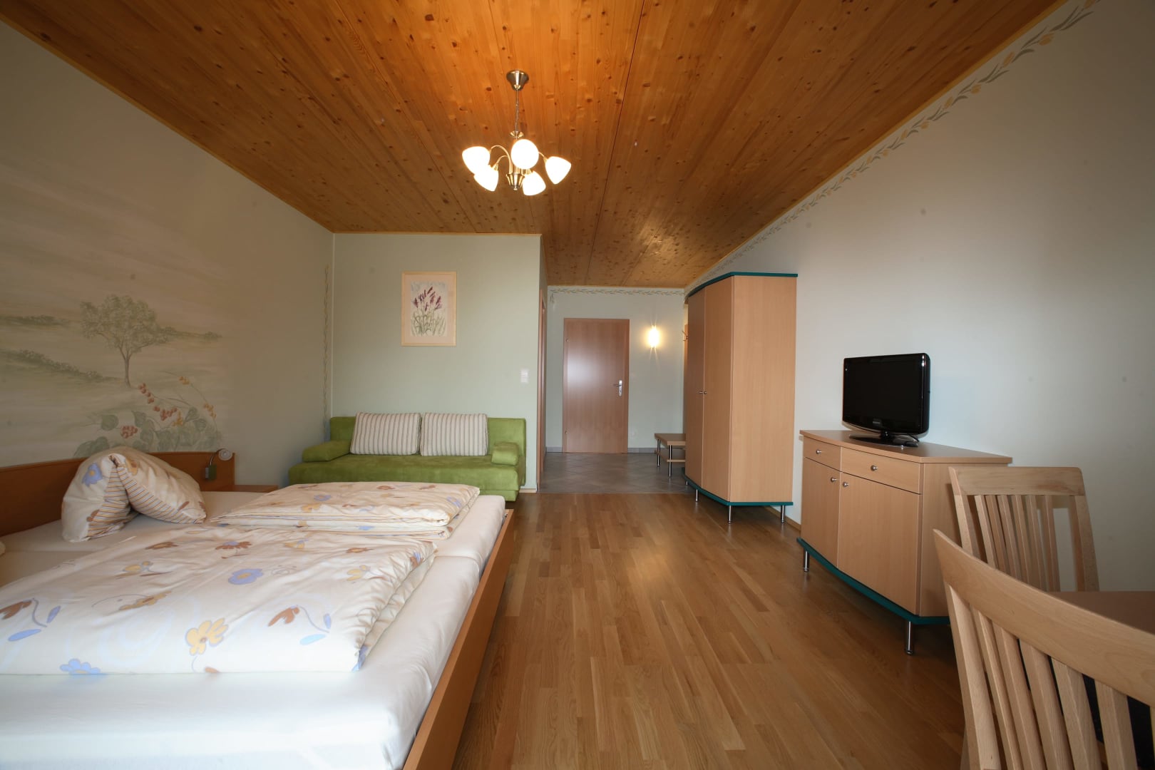 Da unsere Zimmer sehr großzügig sind, bietet dieses Platz für eine Familie mit bis zu 2 Kindern.