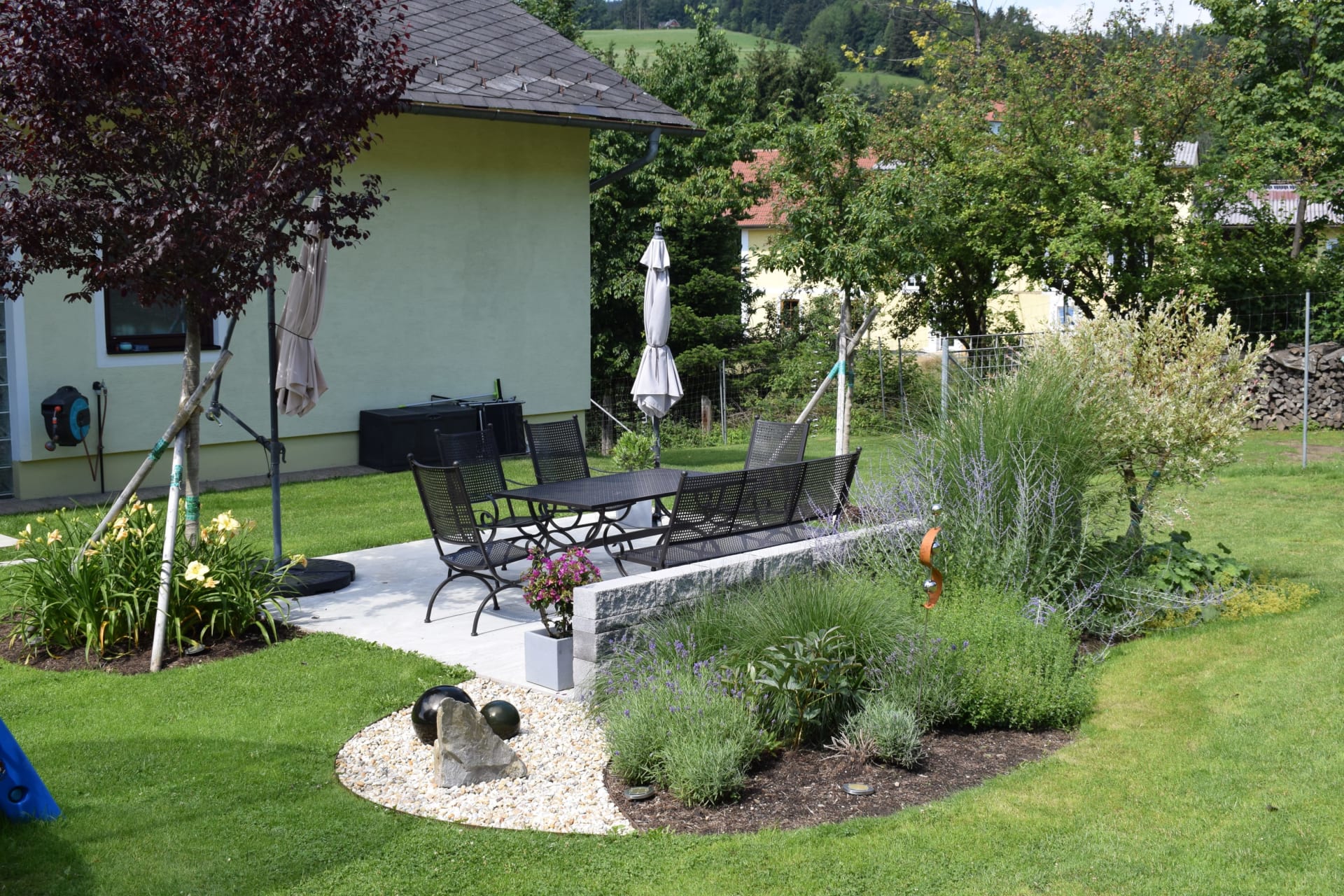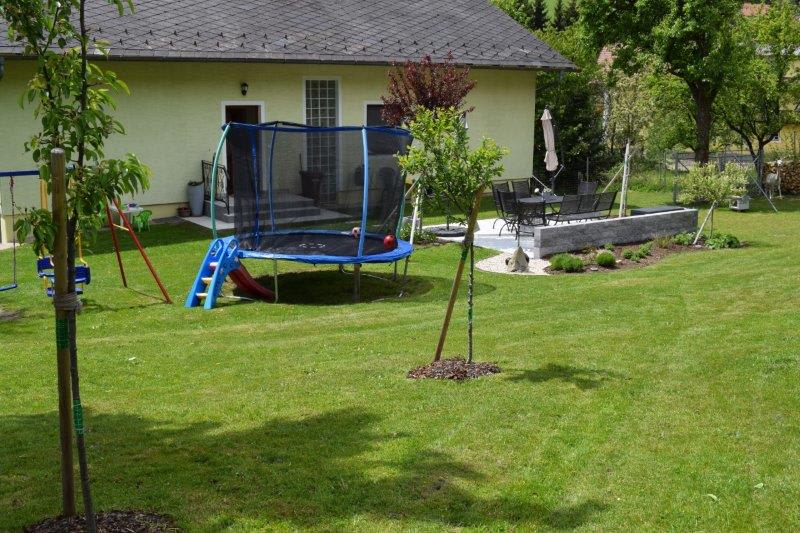 Unser Hof liegt sehr ruhig inmitten des Wechsellandes in einer verkehrsfreien Zone und zentraler Grünlage mit ausreichendem Parkplatz. Die Kinder können im weitläufigen Garten ungestört spielen und toben. Auch ein Waldsparziergang zwischendurch bringt Abwechslung und Freude.