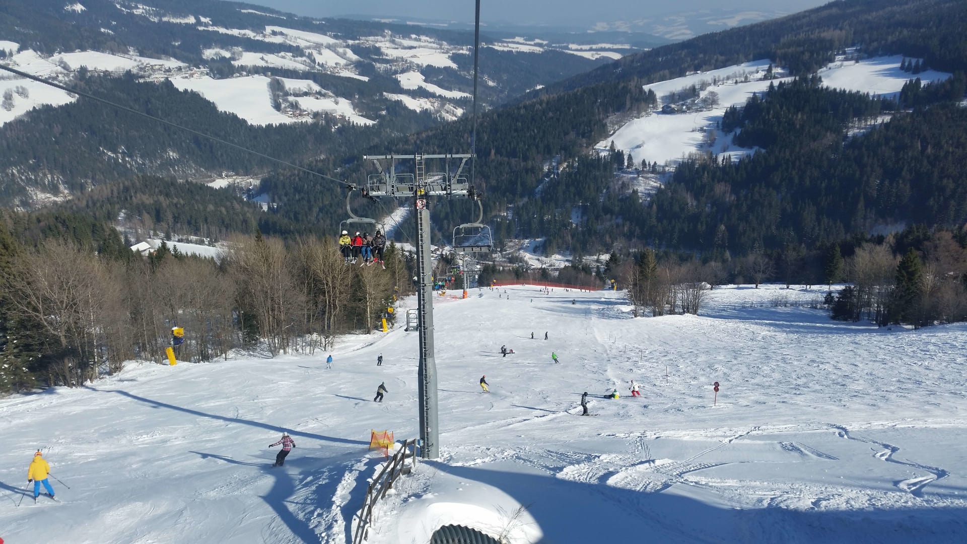 Im Winter bietet sich die Schischaukel Mönichkirchen-Mariensee vor Ort natürlich zum Schifahren und Hüttenzauber an: insgesamt drei neue Vierersesselbahnen, Schneesicherheit garantiert, 7 Almhütten bzw. –restaurants, zwei Schischulen mit kindgerechter Ausstattung und einigen Attraktionen und Überraschungen für Kinder.